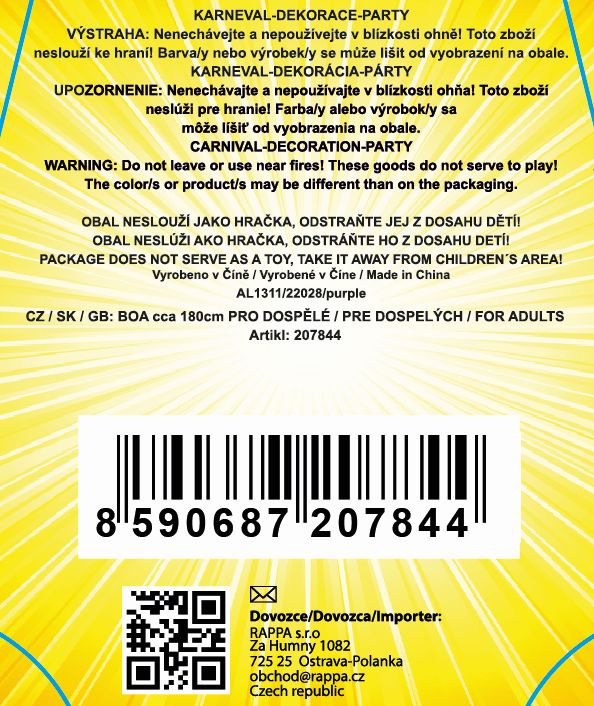 Péřové boa ve fialové barvě je skvělým doplňkem na ples nebo karneval! Jeho délka je cca 1,8 m.