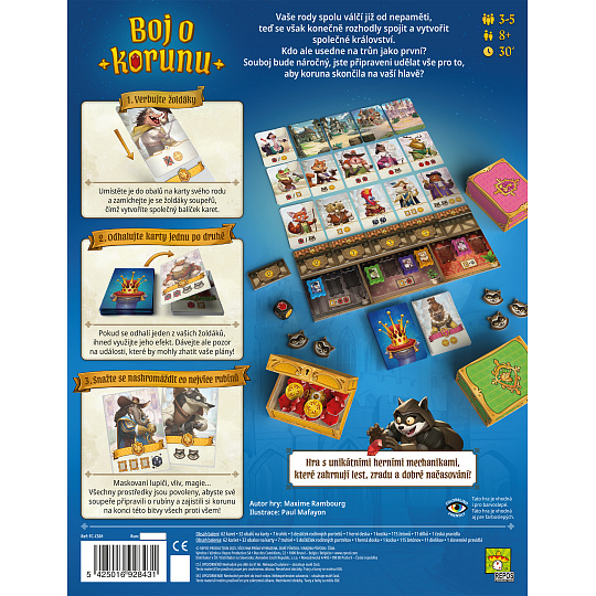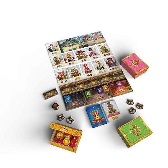 Během čtyř kol budete verbovat žoldnéře, posílat maskované lupiče na své soupeře, zvyšovat svůj vliv nebo používat trochu magie, abyste připravili své protivníky o rubíny a zajistili si korunu na konci této bitvy všech proti všem!