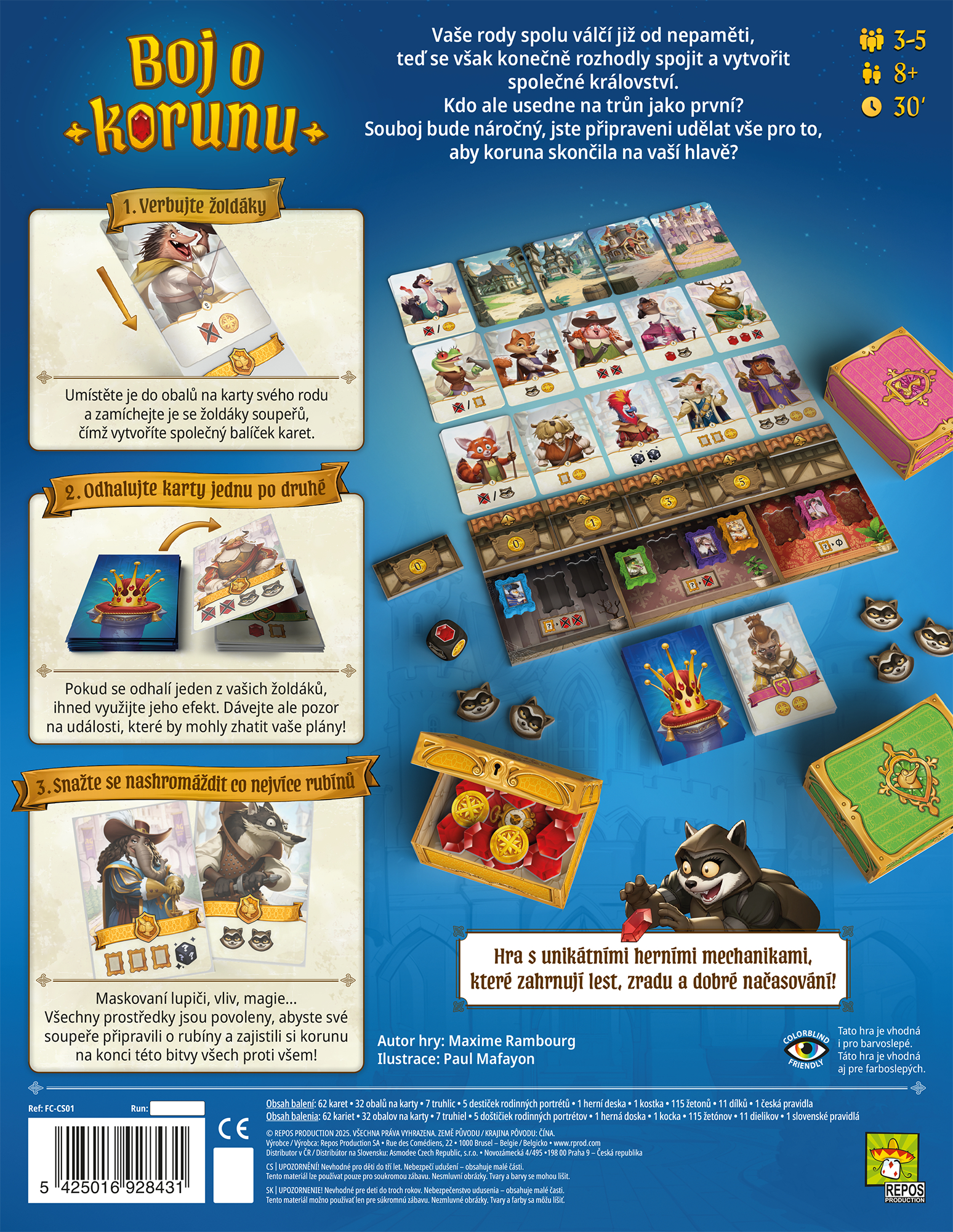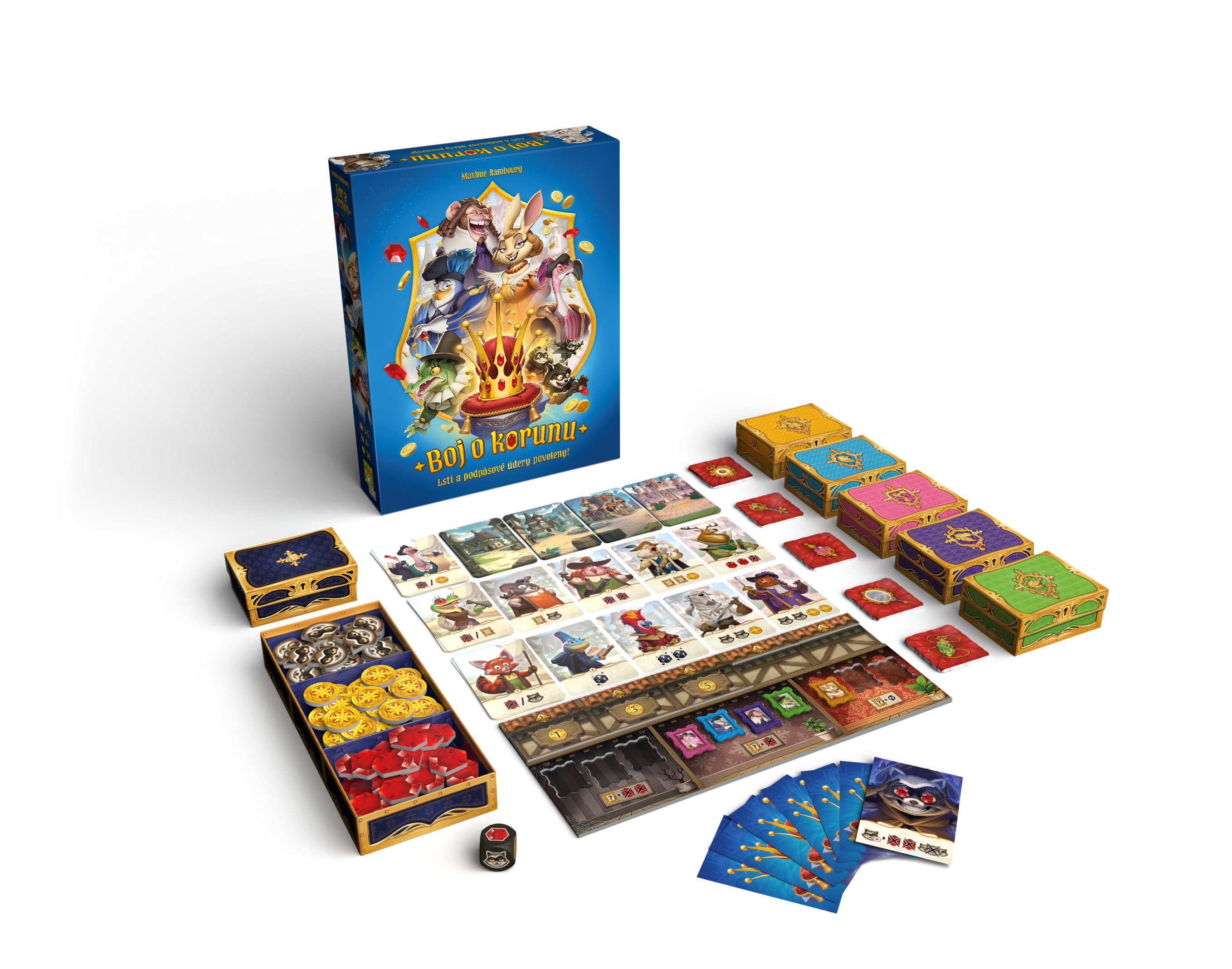Během čtyř kol budete verbovat žoldnéře, posílat maskované lupiče na své soupeře, zvyšovat svůj vliv nebo používat trochu magie, abyste připravili své protivníky o rubíny a zajistili si korunu na konci této bitvy všech proti všem!