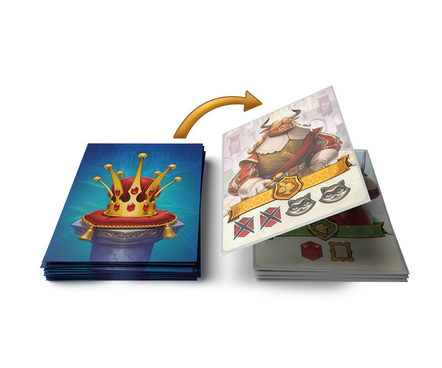 Umístěte je do obalů na karty svého rodu a zamíchejte je se žoldáky soupeřů, čímž vytvoříte společný balíček karet.