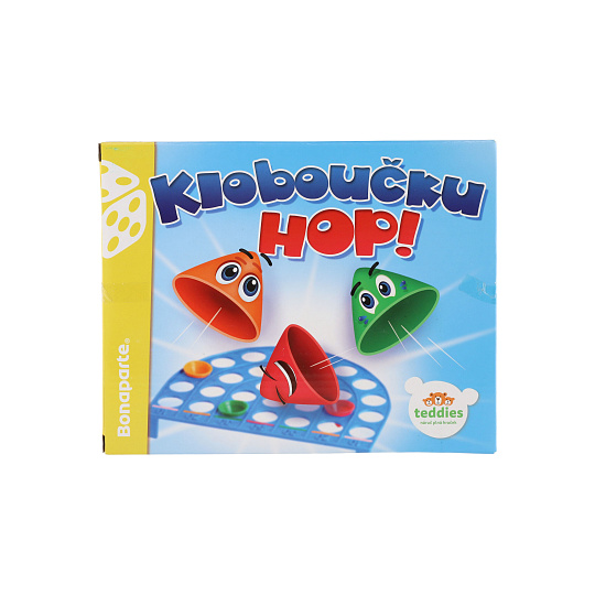 Kloboučku, hop! je společenská hra pro libovolný počet hráčů. Každý hráč střílí odpalovací rampičkou směrem k hernímu plánu a to vždy čtyřikrát, pokaždé kloboučkem jiné barvy. Pokud klobouček zapadne do otvoru v hrací desce, hráč si započítá hodnotu odpovídající danému pruhu. Hodnota bodů se zdvojnásobuje, jestliže klobouček zapadne do otvoru v pruhu označeném stejnou barvou, jako je barva kloboučku. Vyhrává hráč s nejvyšším počtem bodů. Vzdálenost rampičky od hracího pole závisí na schopnostech hráčů a jejich dohodě, v krabici. Rozměr krabice: 23 x 18 x 3,5 cm Vhodné od 3 let