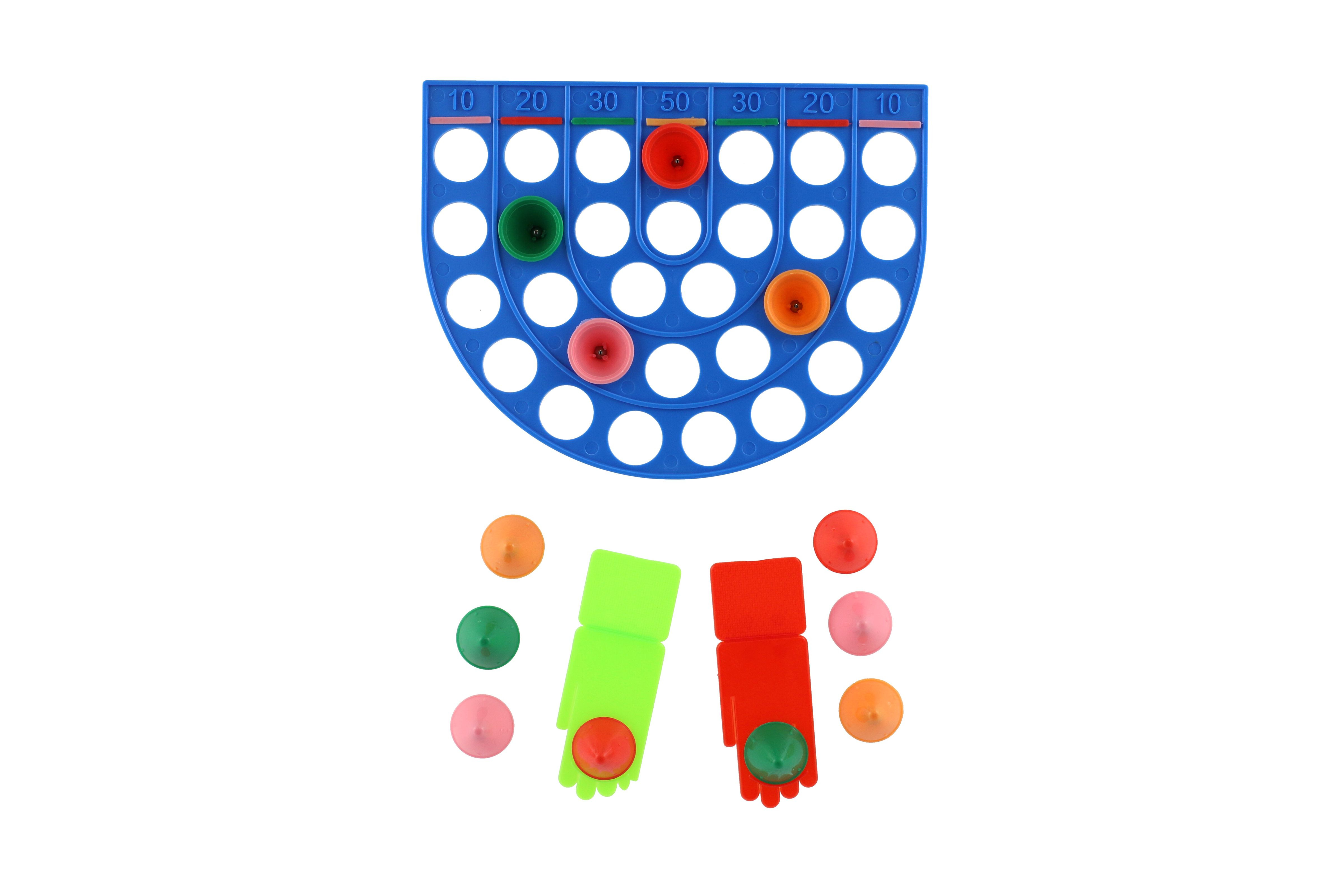 Kloboučku, hop! je společenská hra pro libovolný počet hráčů. Každý hráč střílí odpalovací rampičkou směrem k hernímu plánu a to vždy čtyřikrát, pokaždé kloboučkem jiné barvy. Pokud klobouček zapadne do otvoru v hrací desce, hráč si započítá hodnotu odpovídající danému pruhu. Hodnota bodů se zdvojnásobuje, jestliže klobouček zapadne do otvoru v pruhu označeném stejnou barvou, jako je barva kloboučku. Vyhrává hráč s nejvyšším počtem bodů. Vzdálenost rampičky od hracího pole závisí na schopnostech hráčů a jejich dohodě, v krabici. Rozměr krabice: 23 x 18 x 3,5 cm Vhodné od 3 let