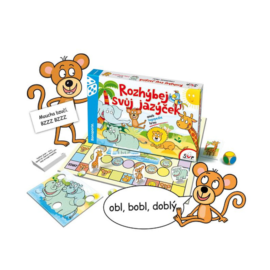 Také nejdou vašemu dítěti některé hlásky správně vyslovit a nechce se je učit? S hrou Rozhýbej svůj jazýček jim půjdou logopedická cvičení sama nenásilnou, hravou a zábavnou formou. Hra je určena nejen pro děti, které mají nesprávnou výslovnost nebo méně mluví, ale hlavně pro ty, které chtějí těmto vadám předejít. Základem hry je motivací rozhýbat jazýček a následně procvičit výslovnost jednotlivých hlásek přes slabiky, slova až po celé věty. Na procvičování jsou všechny hlásky, u kterých je hned uveden správný postup výslovnosti. Pravidla jsou nastavena tak, že dítě zopakuje všechny slabiky, slova i věty. Rozměr krabice: 35 x 23 x 4 cm Vhodné od 3 let