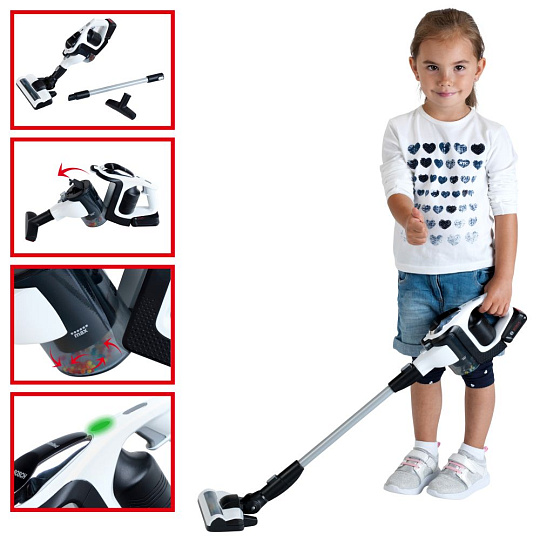 Vysávejte doma jako maminka! S tímto modelem tyčového vysavače Bosch je vysávání skvělá zábava. Vysavač je věrnou kopií originálu, má výměnné nástavce a je možné použít trubici k proměně malého ručního vysavače na tyčový. Barevné kuličky v nádobě vysavače se během vysávání točí. Provoz na baterie - 3 ks 1,5 V AA - nejsou součástí balení. Vhodné pro děti od 3 let. Maximální výška vysavače 80 cm. Rozměry balení: 43 x 18 x 15 cm.