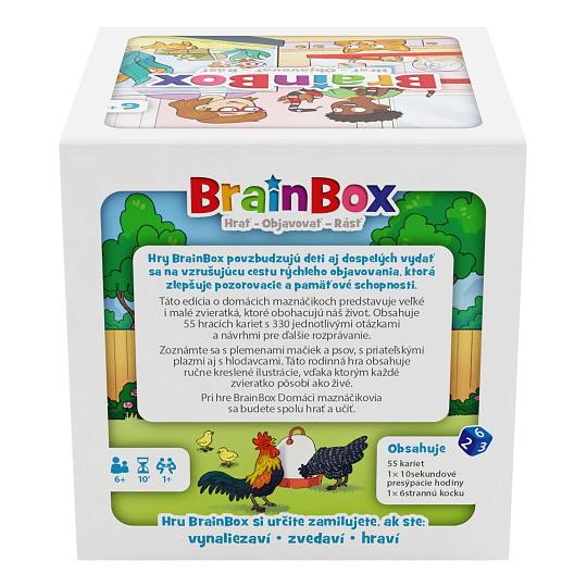 BrainBox je zábavná paměťová a postřehová karetní hra, která otestuje váš smysl pro detail. Odpovědi na všechny otázky máte přímo před sebou na kartě. Bude vám stačit 10 vteřin na to, abyste si všechno zapamatovali? Tato edice hry, věnovaná domácím mazlíčkům, vám představí velká i malá zvířátka, která obohacují náš život.
