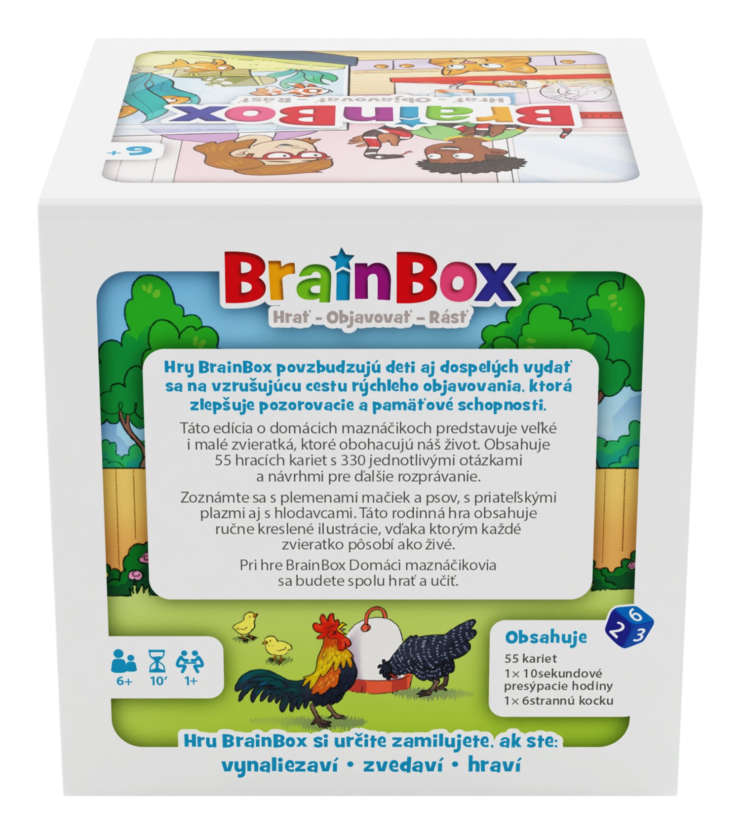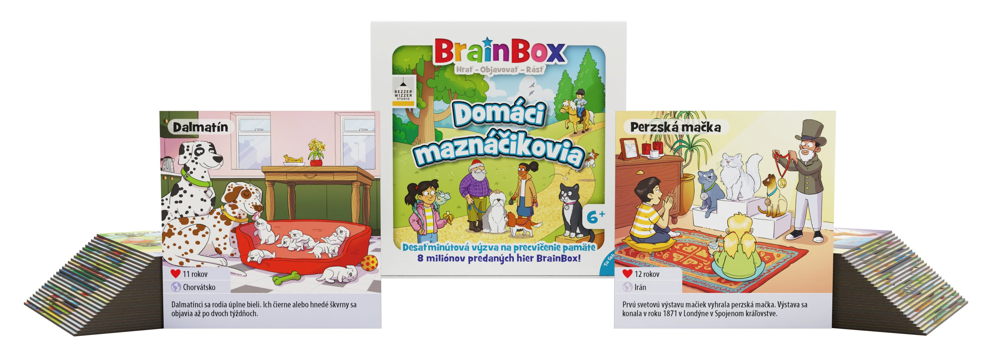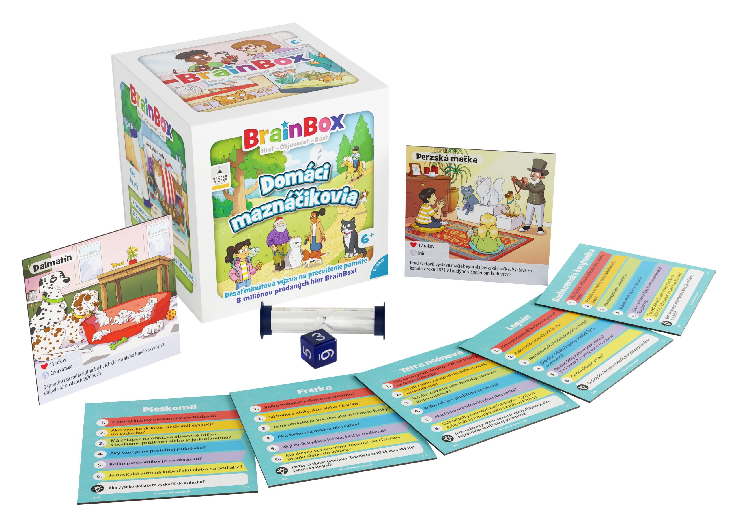 BrainBox je zábavná paměťová a postřehová karetní hra, která otestuje váš smysl pro detail. Odpovědi na všechny otázky máte přímo před sebou na kartě. Bude vám stačit 10 vteřin na to, abyste si všechno zapamatovali? Tato edice hry, věnovaná domácím mazlíčkům, vám představí velká i malá zvířátka, která obohacují náš život.