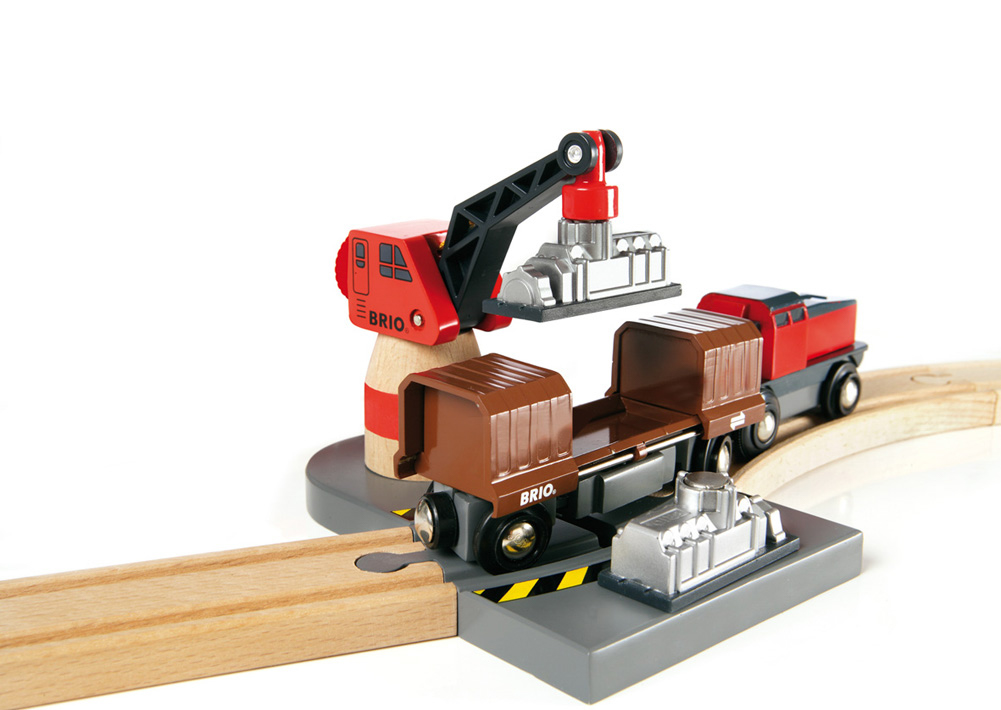 Plastový box je nejen praktický pro uskladnění vláčkodráhy, ale zároveň je po sestavení její nedílnou součástí. Provoz vláčkodráhy tak probíhá ve více výškových úrovních. Na kopečky šplhá mašinka s ozubenými kolečky po vroubkatých kolejničkách a stejně bezpečně po nich i sjíždí. Na jednom z kopečků je umístěn jeřáb s magnetem, který nakládá na vagónky náklad vybavený druhou polaritou magnetu. Vláčkodráha je vyrobena v kombinaci materiálů dřevo/plast.| Věk: 3+