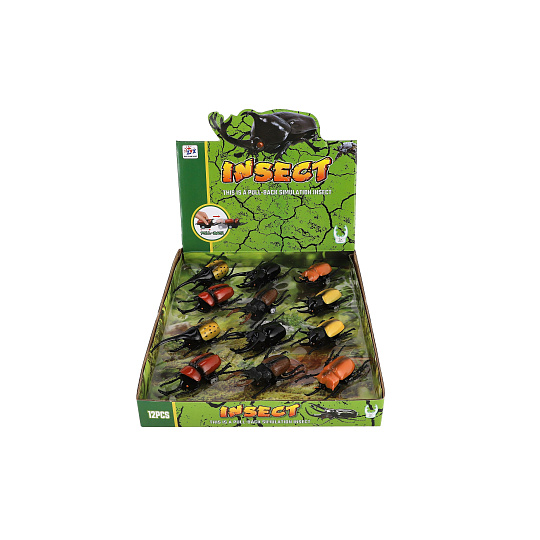 Brouk o velikosti 10 cm je vybaven mechanismem na zpětné natažení, díky kterému se rychle rozjede a pobaví děti na dlouhé hodiny. Vhodné pro děti od 3 let.