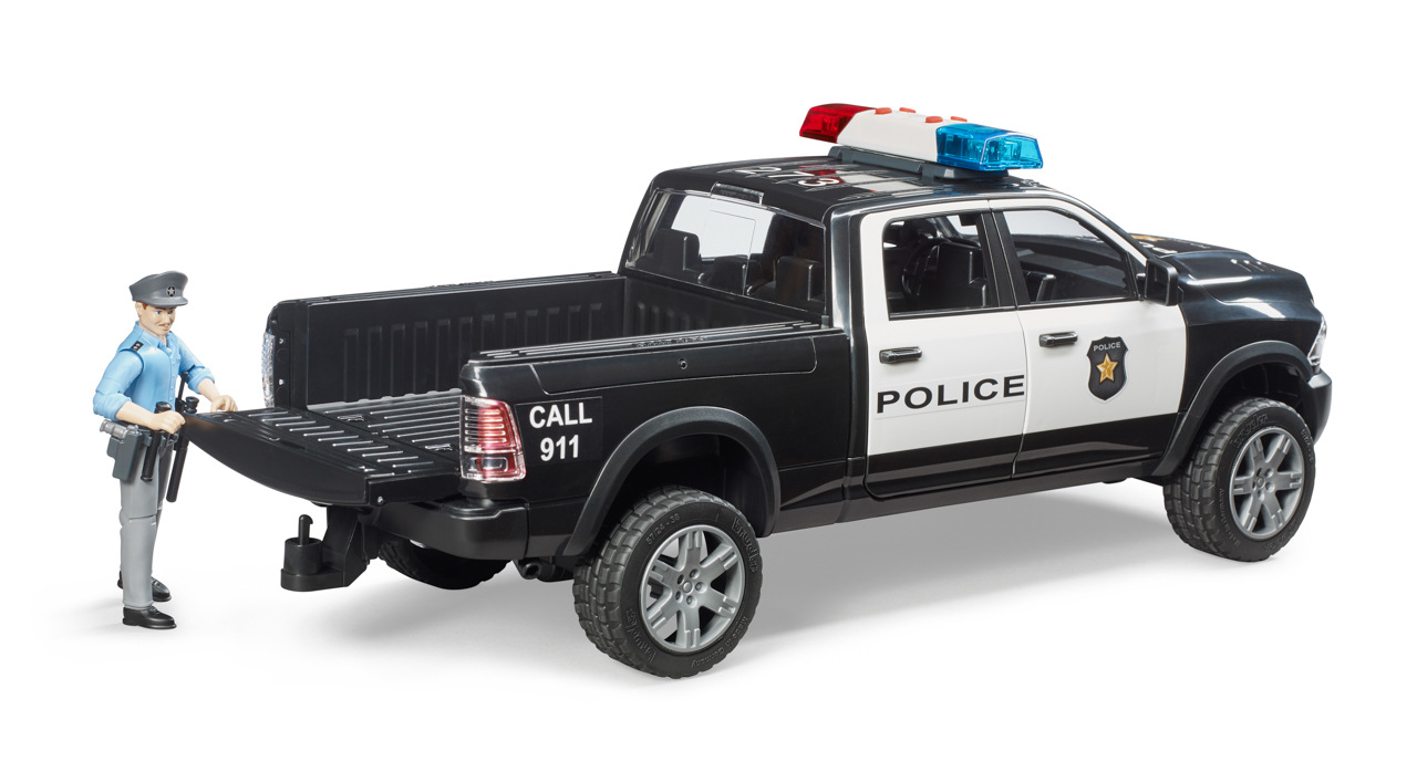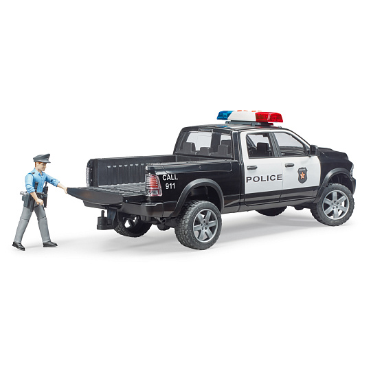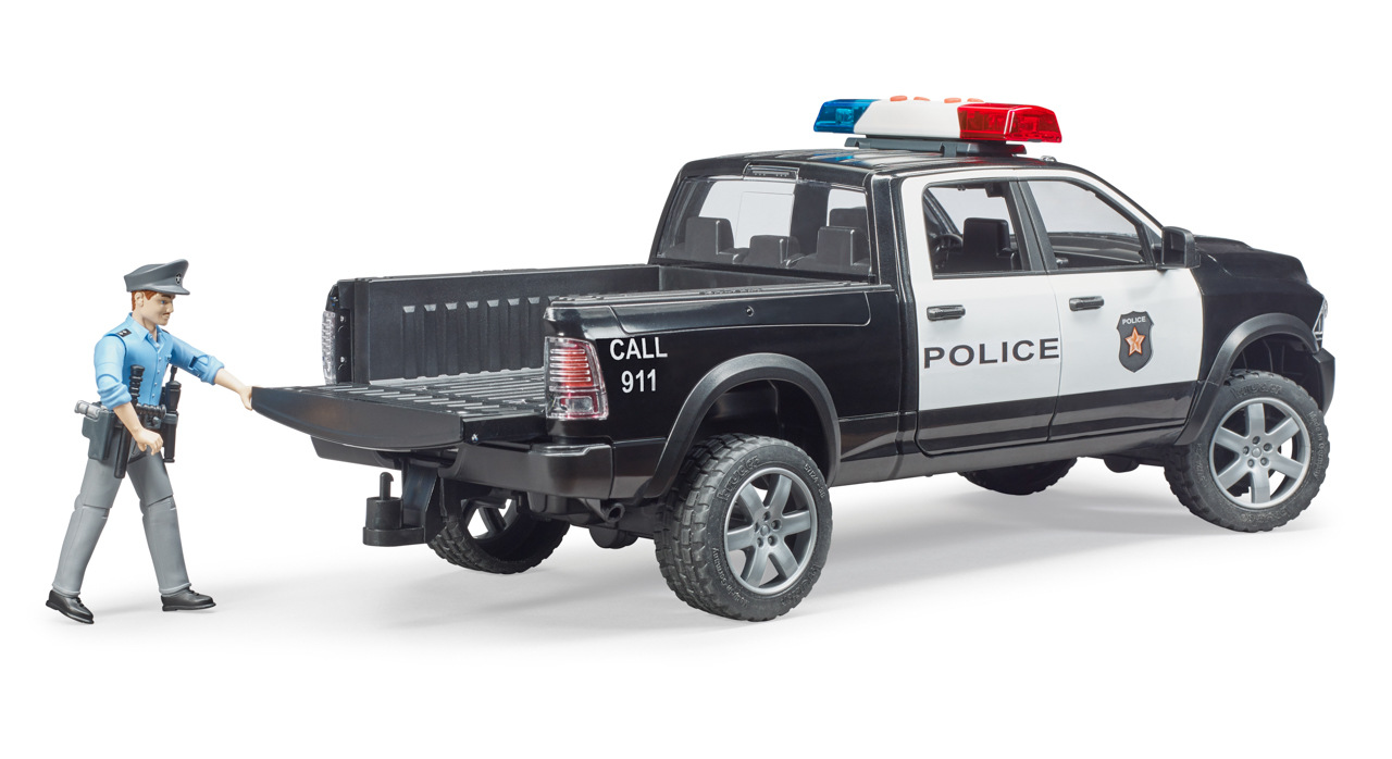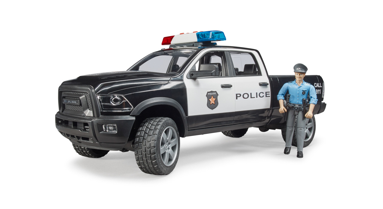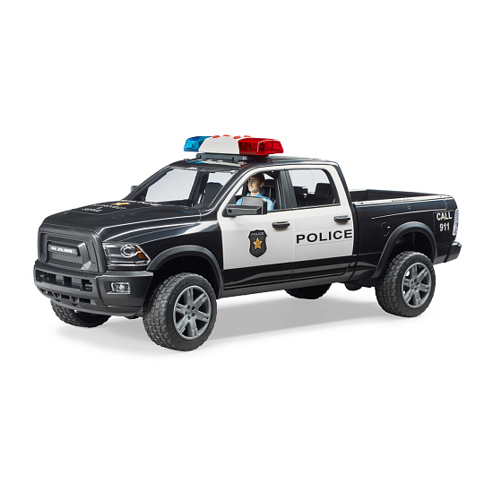 Policie BRUDER dostává posily. K pohotovostním službám BRUDER je přidán policejní pick-up 4x4. Nouzové vozidlo je založeno na známé RAM 2500 a, jak je běžné zejména v USA, má atraktivní, nápadné barevné schéma a Light & Sound Module namontovaný na střeše. Hračka je stejně jako její velký vzor vybavena čtyřdveřovou kabinou CREW Cab. Všechny dveře jsou otevíratelné a nabízejí místo pro 4 postavy ze světa bworld (prodejné samostatně). Pro pohodlí při jízdě a pro jízdu v terénu je tento model 1:16 vybaven odpruženými nápravami, díky kterým lze přední nápravu řídit s přiloženým prodloužením volantu. Dveře zavazadlového prostoru lze otevřít. Auto má čiré skleněné světlomety vpředu. Okna jsou vyrobena z průhledného vysoce kvalitního plastu. Policista (figurka je součástí balení) je dobře vybaven a připraven na různé akce. Měřítko: 1:16. Rozměr balení: 17,5 x 19,5 x 50,5 cm. Doporučený věk: 4+. Nevhodné pro děti mladší 3 let.