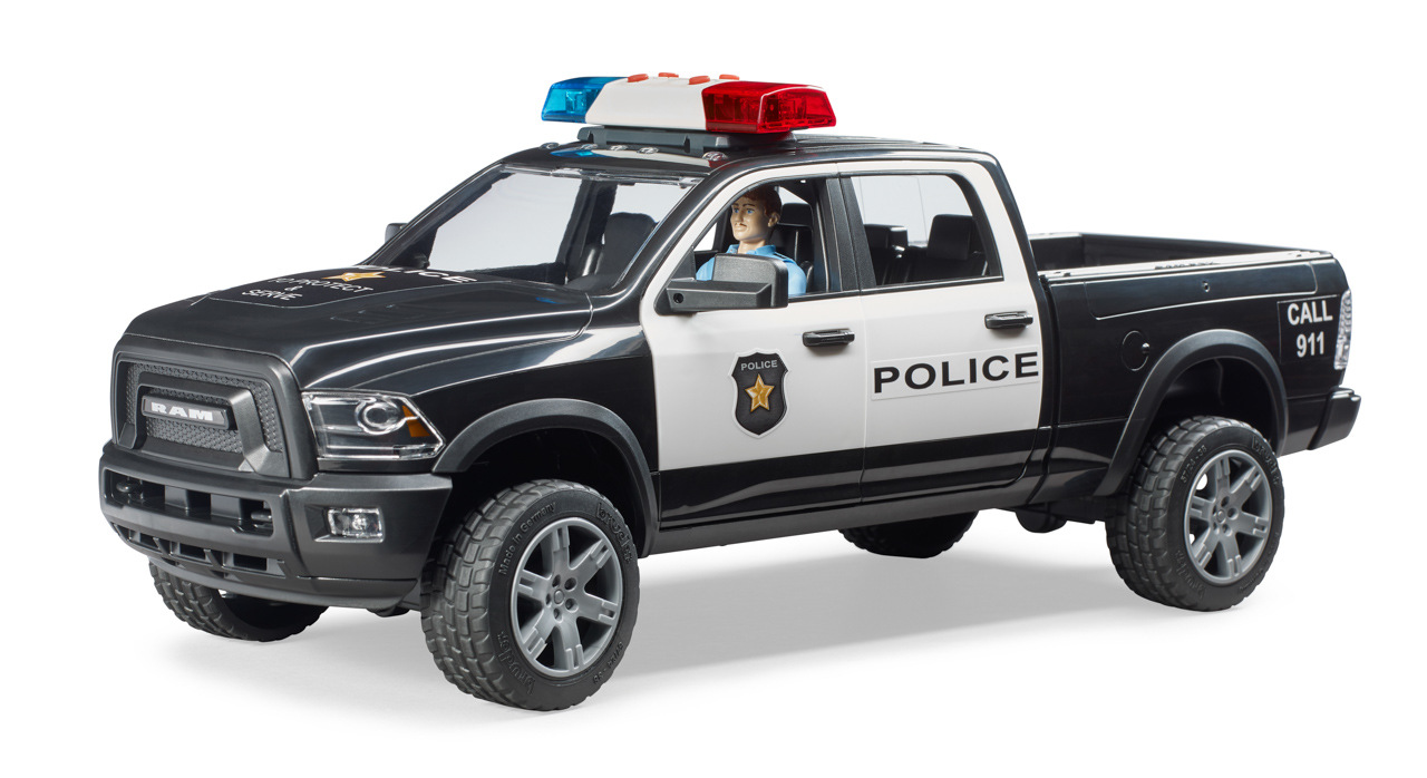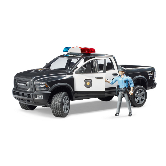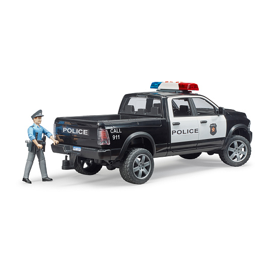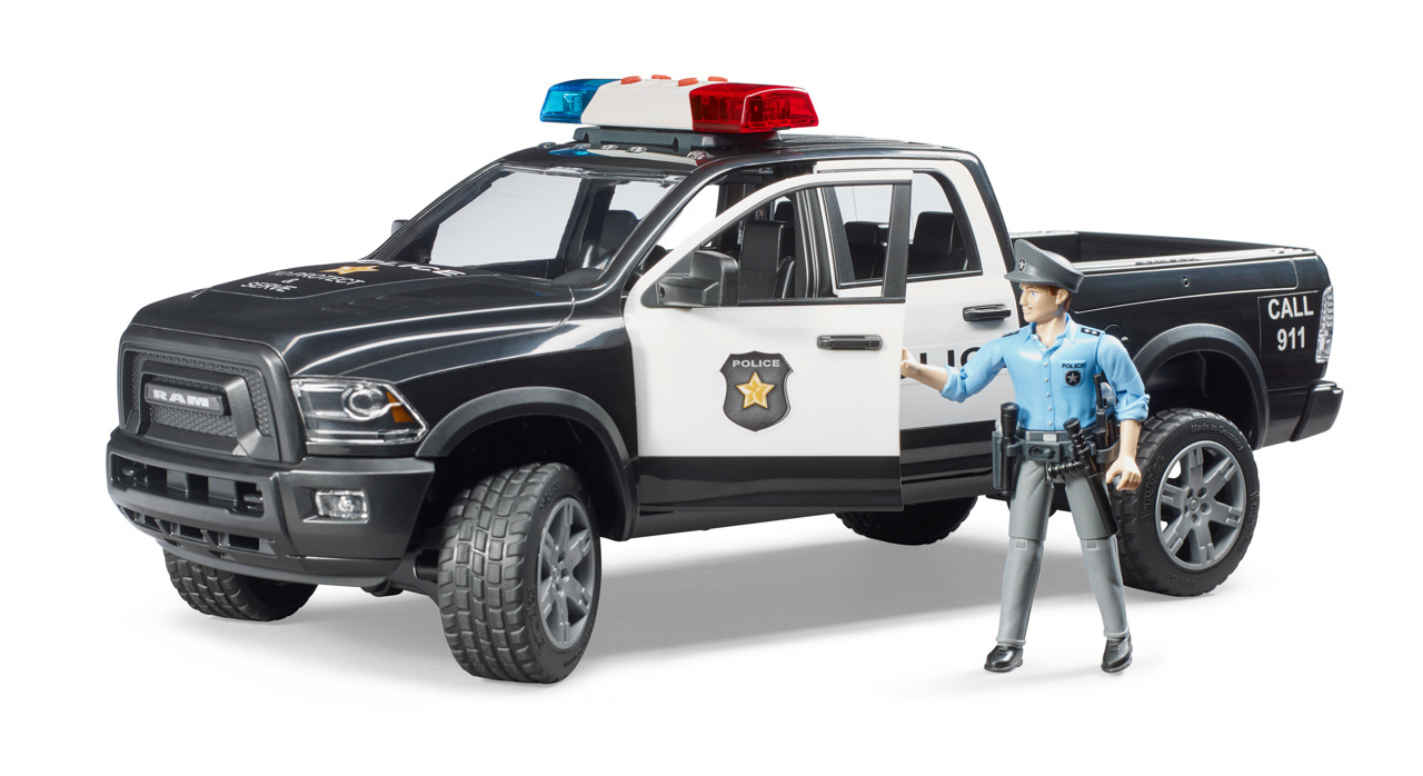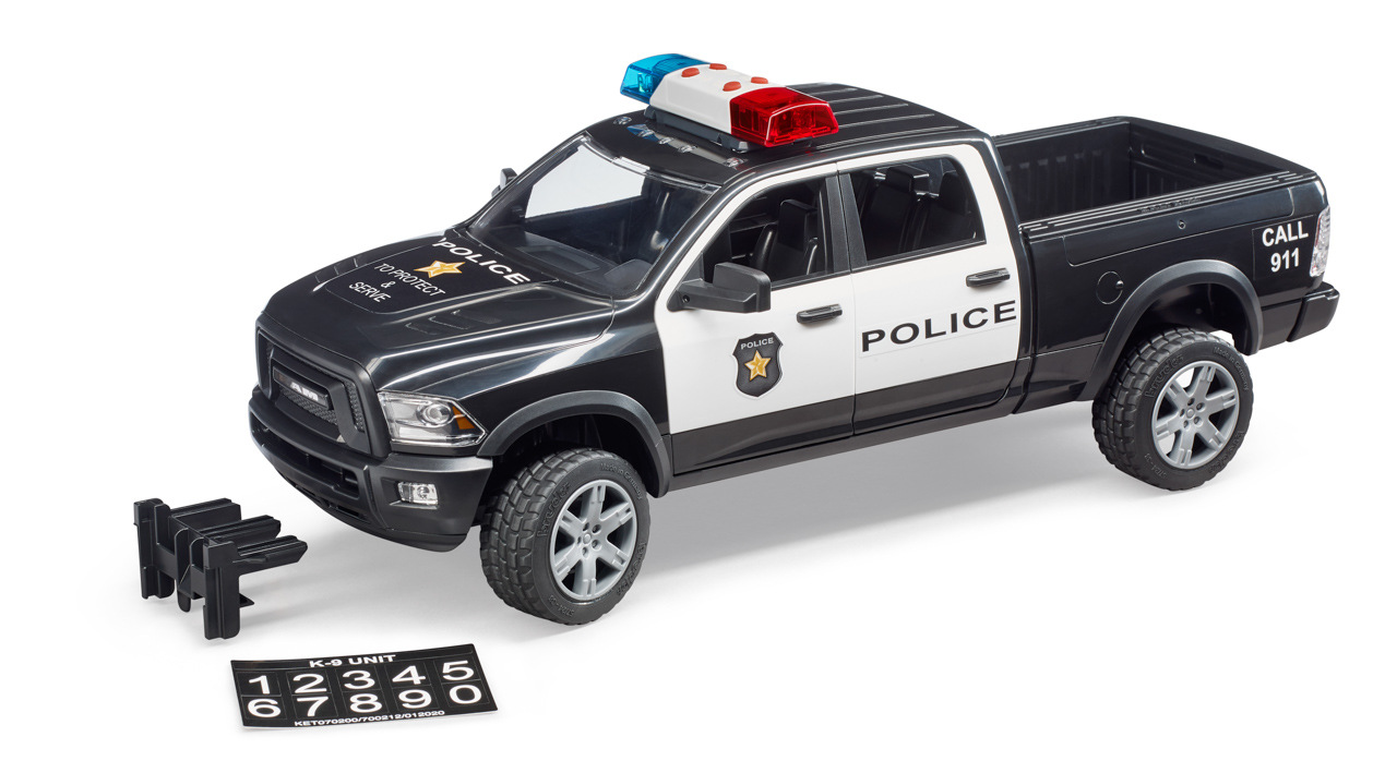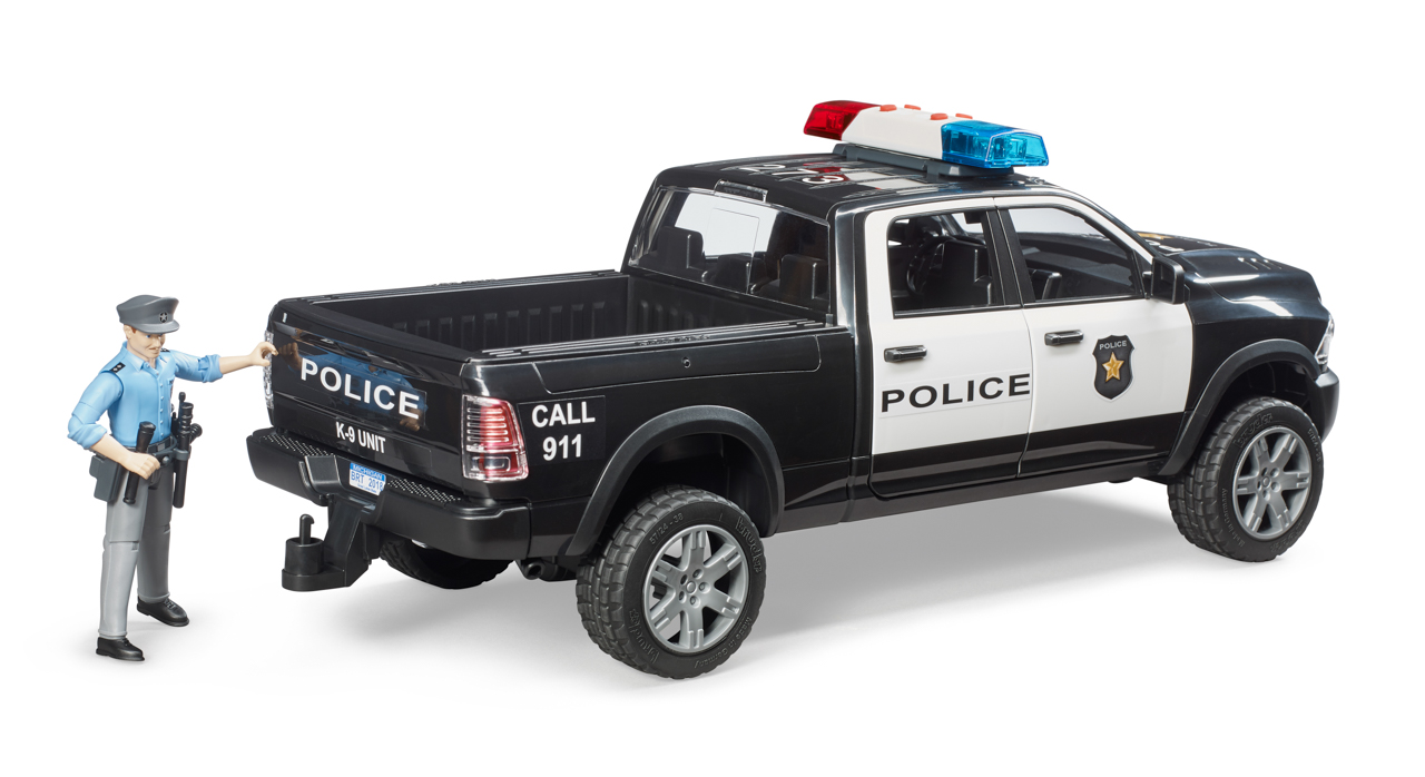 Policie BRUDER dostává posily. K pohotovostním službám BRUDER je přidán policejní pick-up 4x4. Nouzové vozidlo je založeno na známé RAM 2500 a, jak je běžné zejména v USA, má atraktivní, nápadné barevné schéma a Light & Sound Module namontovaný na střeše. Hračka je stejně jako její velký vzor vybavena čtyřdveřovou kabinou CREW Cab. Všechny dveře jsou otevíratelné a nabízejí místo pro 4 postavy ze světa bworld (prodejné samostatně). Pro pohodlí při jízdě a pro jízdu v terénu je tento model 1:16 vybaven odpruženými nápravami, díky kterým lze přední nápravu řídit s přiloženým prodloužením volantu. Dveře zavazadlového prostoru lze otevřít. Auto má čiré skleněné světlomety vpředu. Okna jsou vyrobena z průhledného vysoce kvalitního plastu. Policista (figurka je součástí balení) je dobře vybaven a připraven na různé akce. Měřítko: 1:16. Rozměr balení: 17,5 x 19,5 x 50,5 cm. Doporučený věk: 4+. Nevhodné pro děti mladší 3 let.