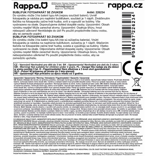 Fotoaparát jako bublinkovač! Užij si miliony bublinek, které se při mačkání spouště z fotoaparátu spustí. Ideální pro hru venku nebo v interiéru. Funguje na 3 ks baterí typu AA, které nejsou součástí balení. Naplň zásobník bublifukem a zábava může začít!