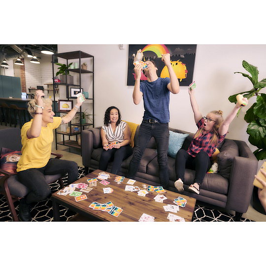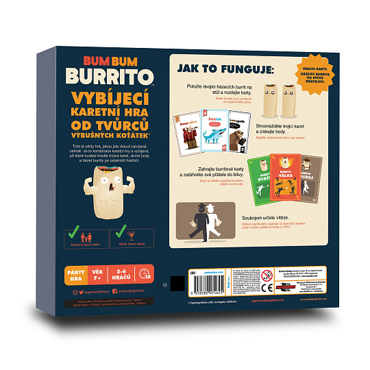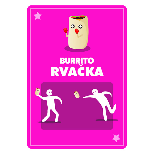 Toto je párty hra, jakou jste dosud zaručeně nehráli. Je to kombinace karetní hry a vybíjené, při které budete hledat trojice karet, sbírat body a házet burrity po ostatních hráčích.