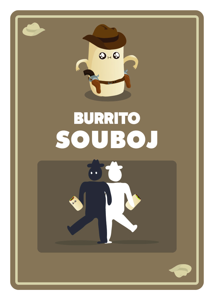 - Během burritového souboje se dva hráči postaví zády k sobě, udělají tři kroky a HODÍ.