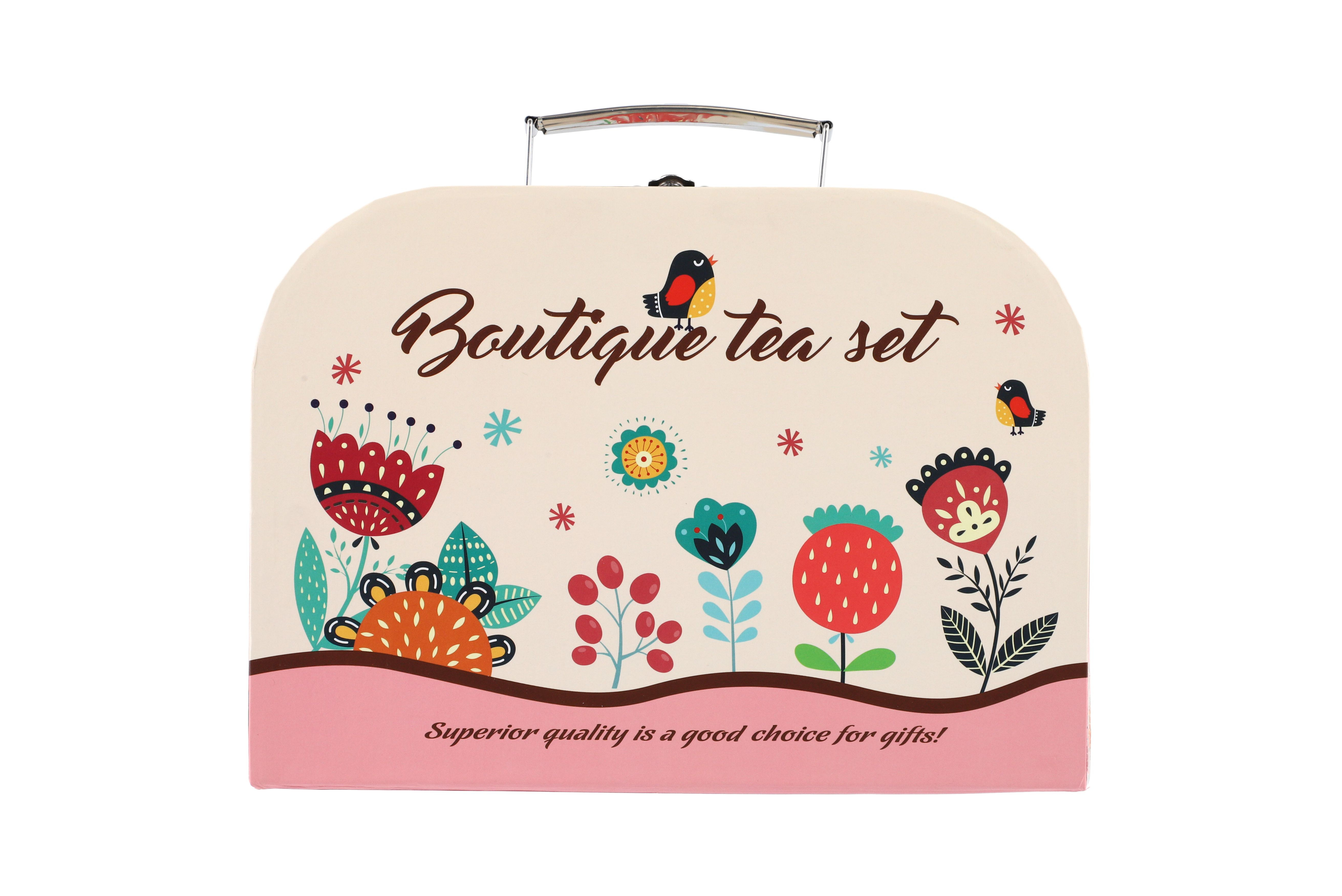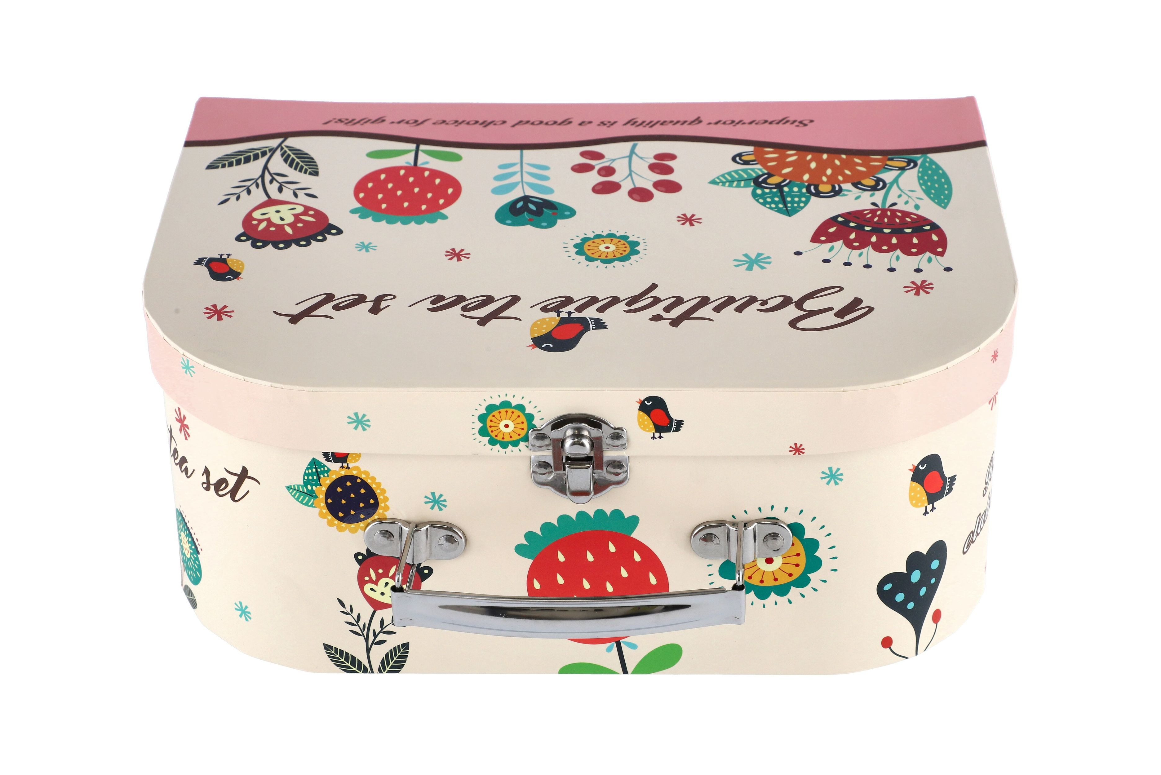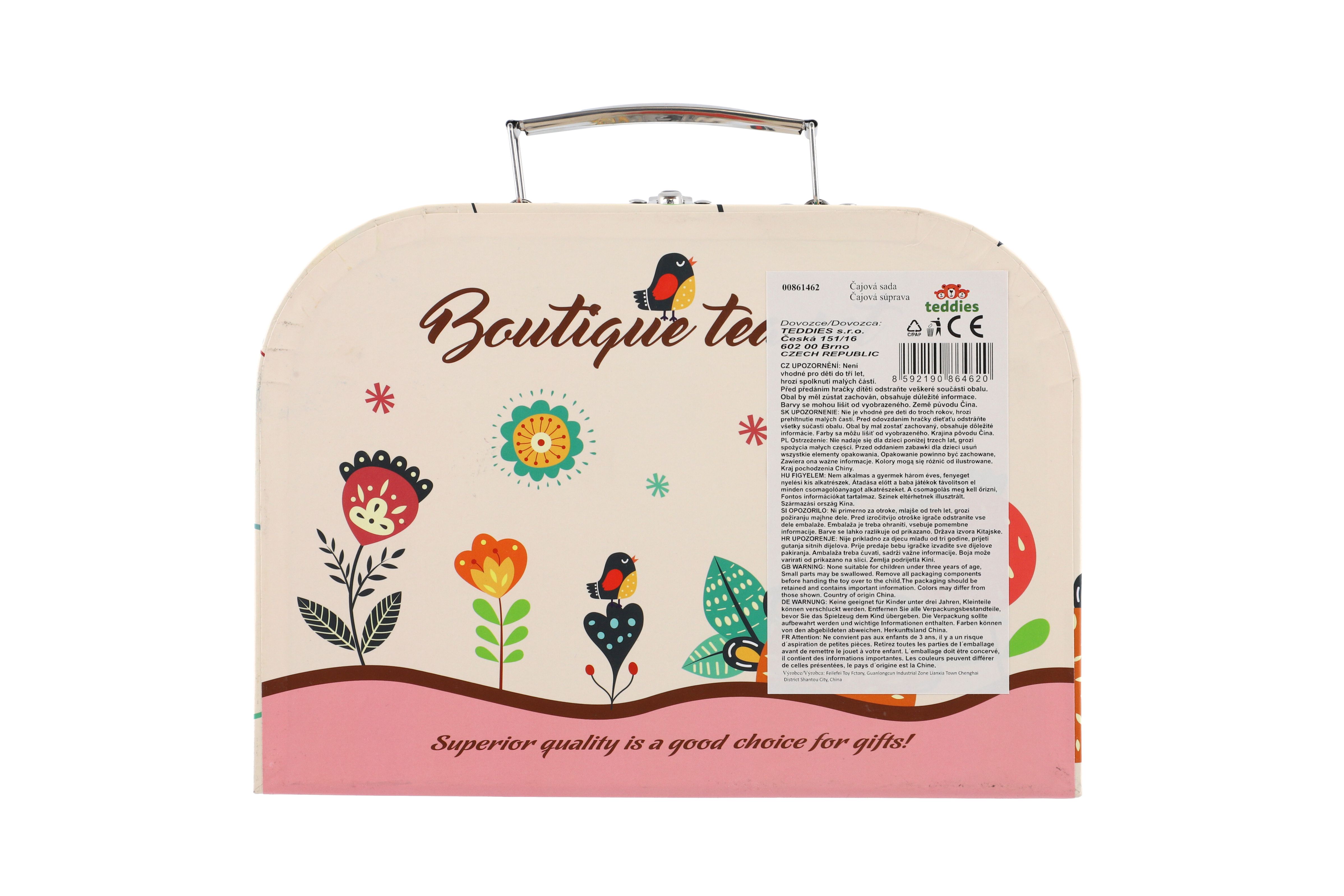 Čajová sada nádobí plech s doplňky v kufříku 25x18x10,5cm v sáčku