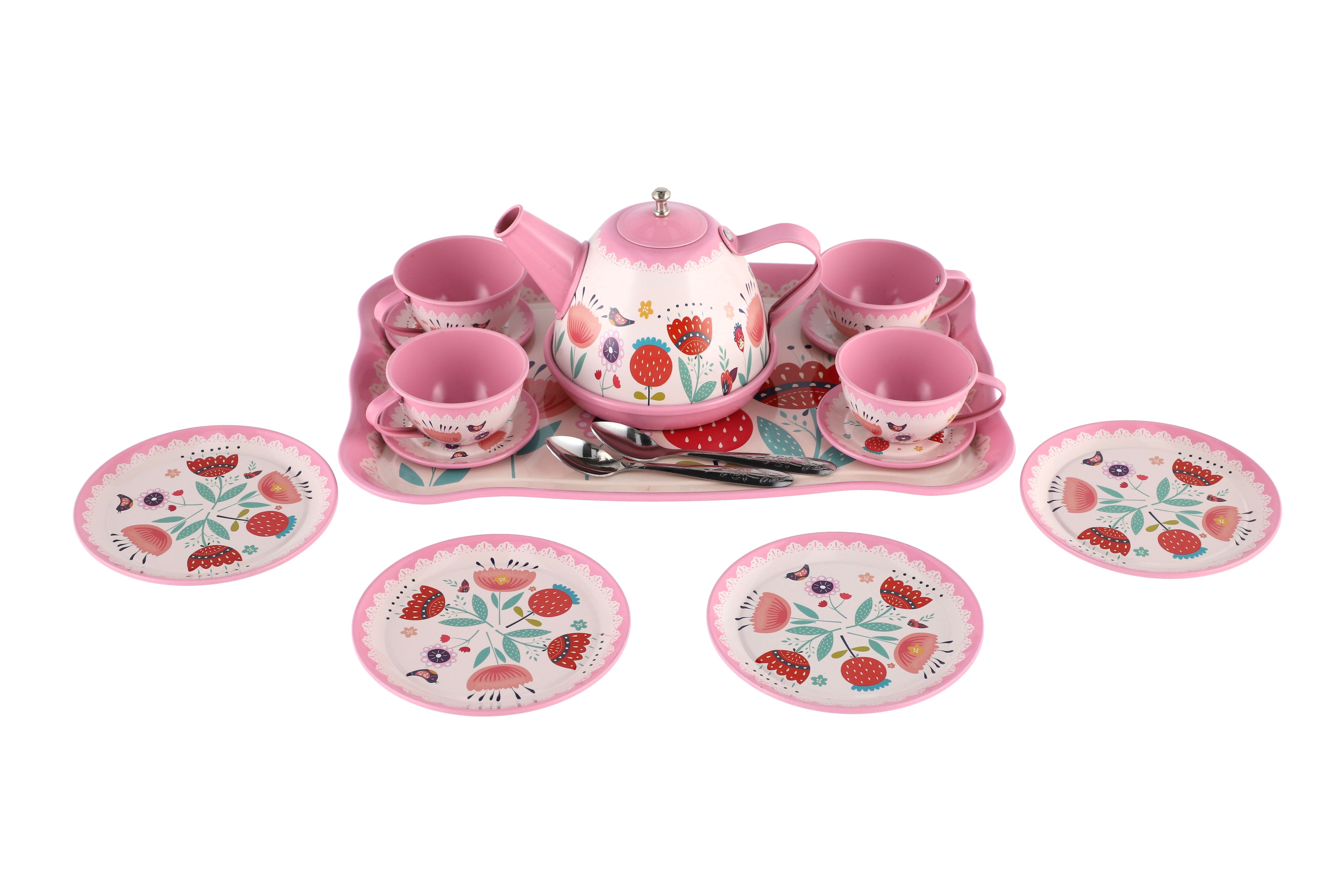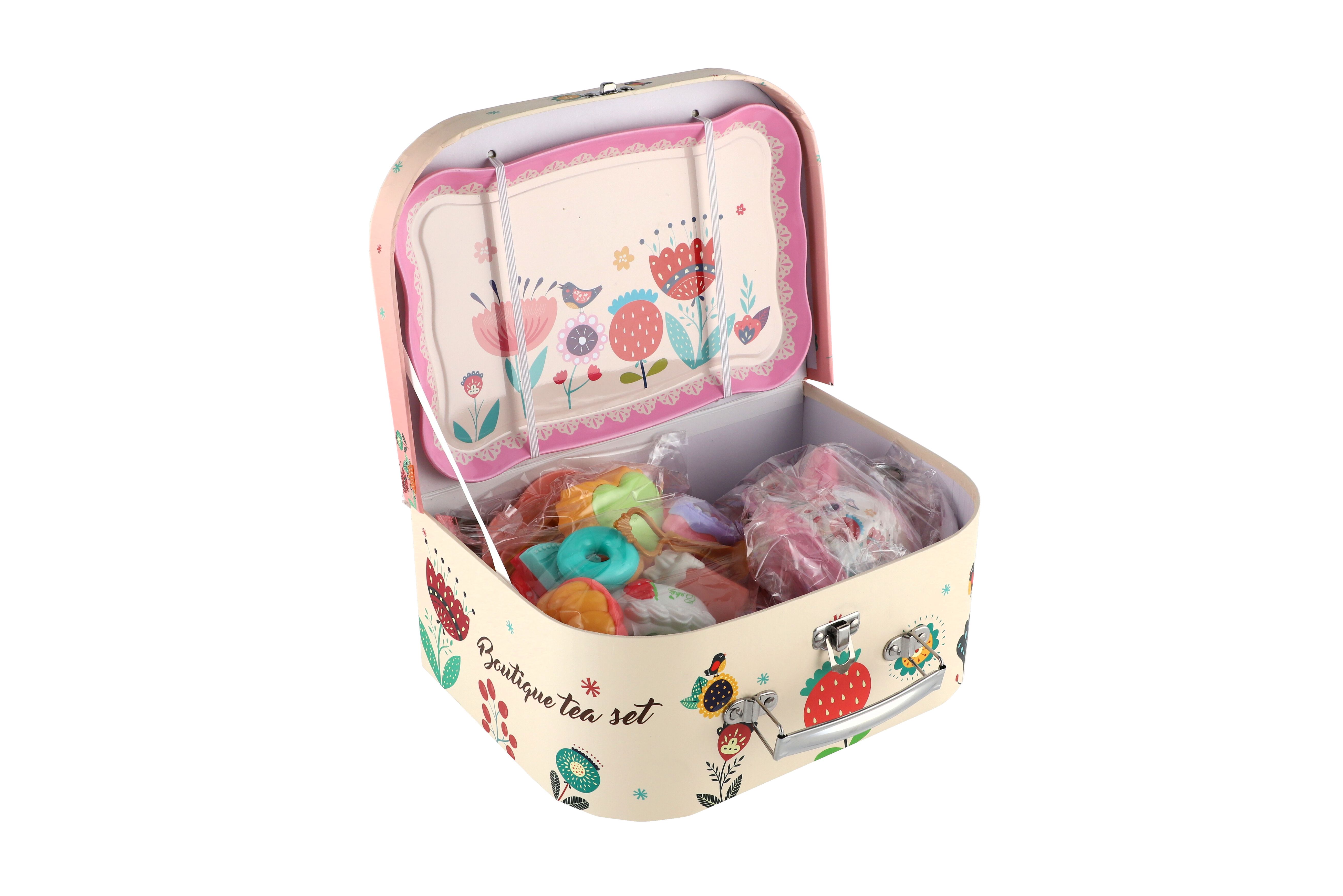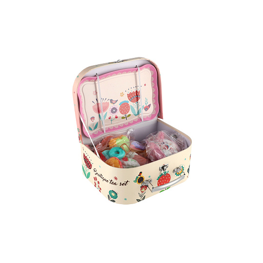 Čajová sada nádobí plech s doplňky v kufříku 25x18x10,5cm v sáčku