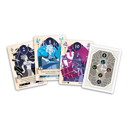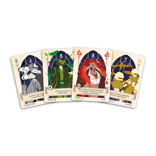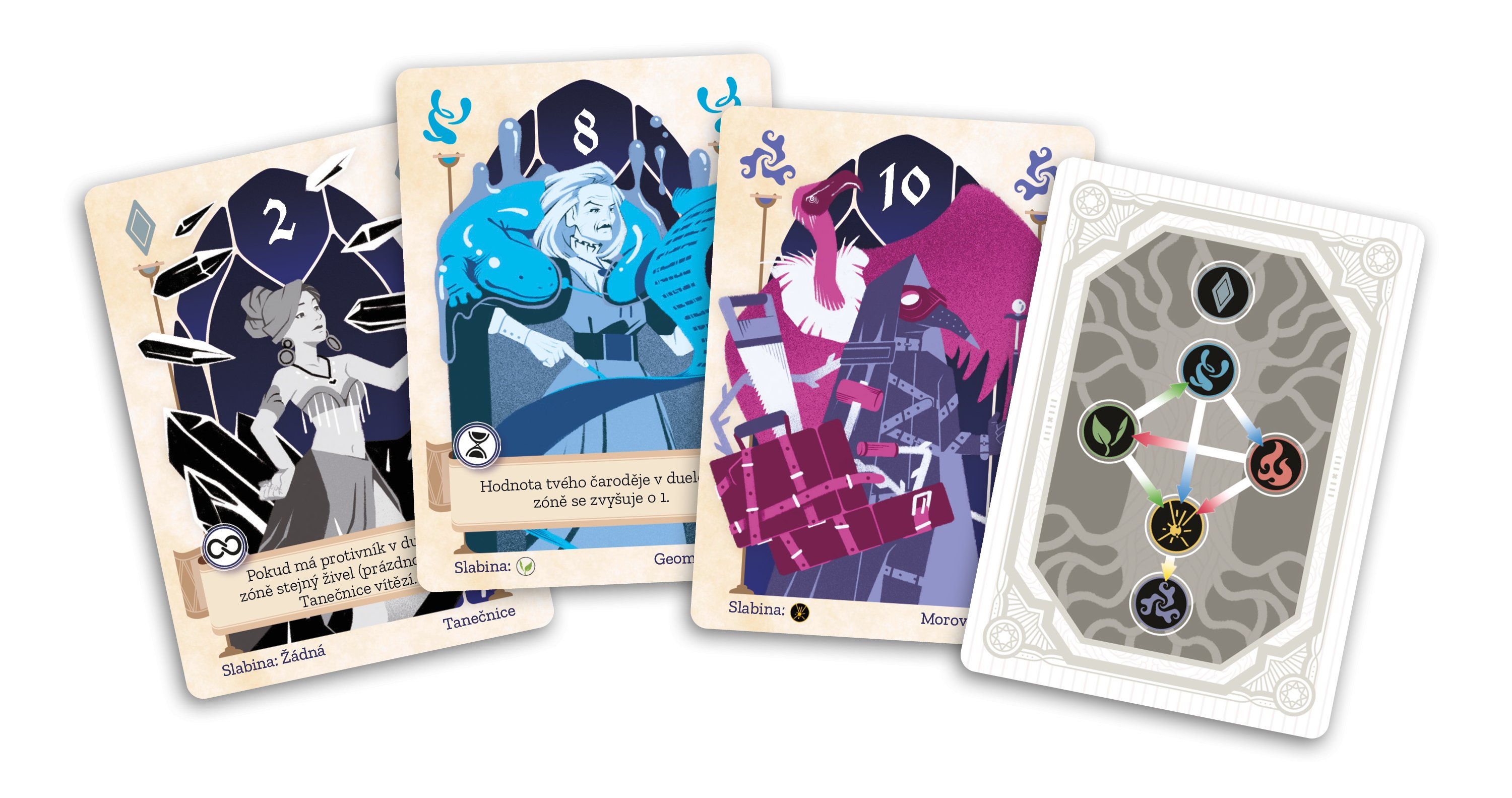 Na začátku hry si každý hráč sestaví balíček 6 karet, které bude v průběhu hry používat. Každé kolo odehrajete pomocí svých 6 karet čarodějů, kteří se vzájemně utkají jeden po druhém a poměří své magické schopnosti a hodnoty.