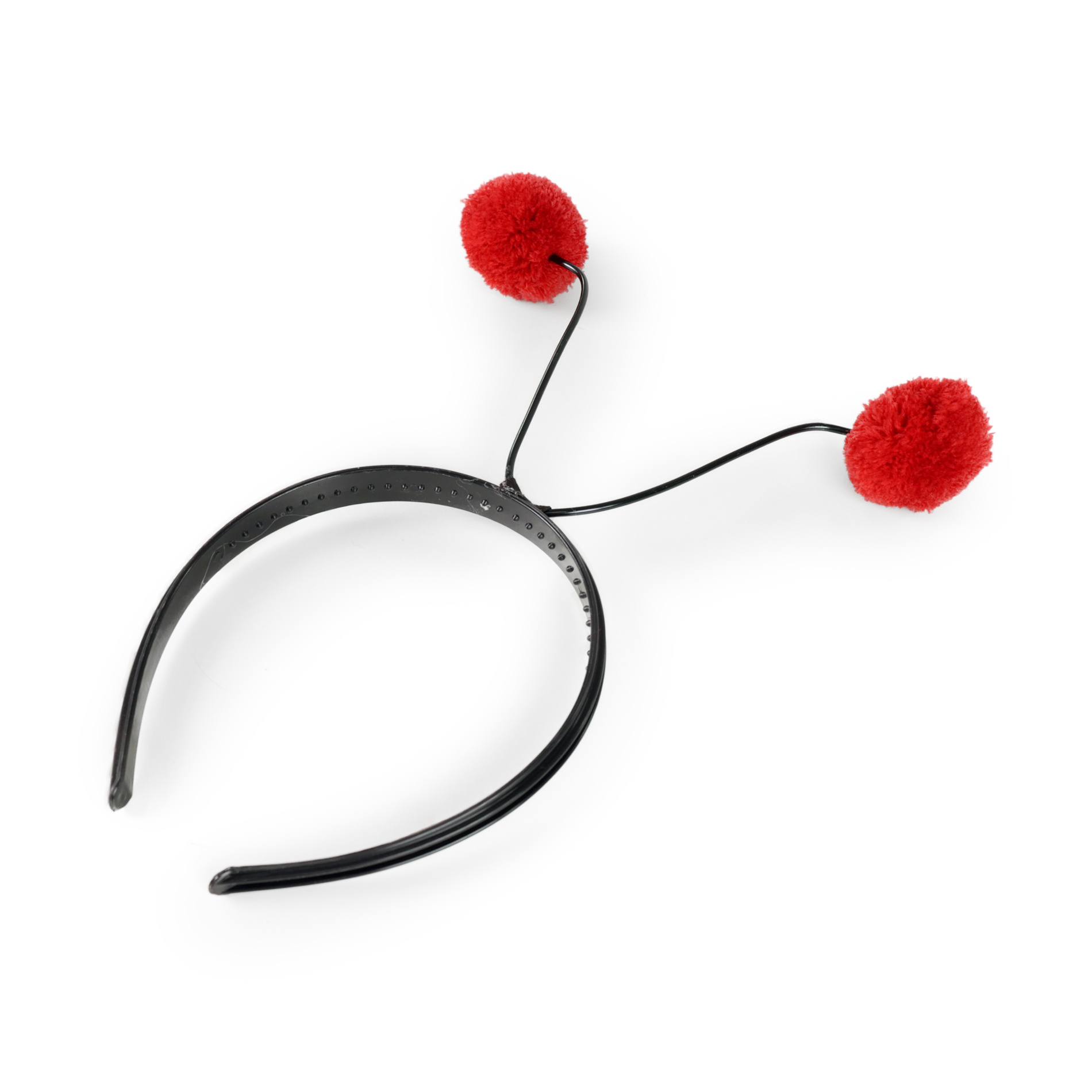 Karnevalová čelenka beruška/brouček s tykadly. Čelenka je v černo-červené barvě a je senzačním doplňkem na karneval ke tvému kostýmu!