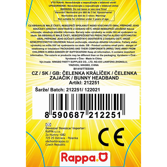 Rappa Čelenka fialová s ušima králíčka dětská