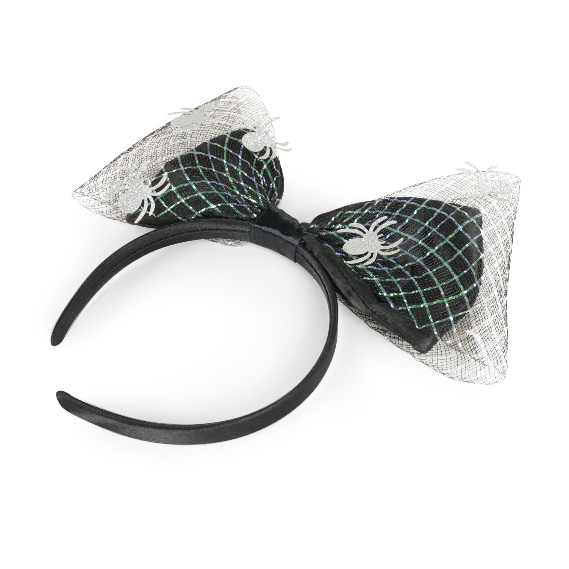 Úžasná čelenka s velkou mašlí a pavoučky je senzačním doplňkem na párty či karneval. Ideální do vlasů při oslavě čarodějnic nebo halloweenu.