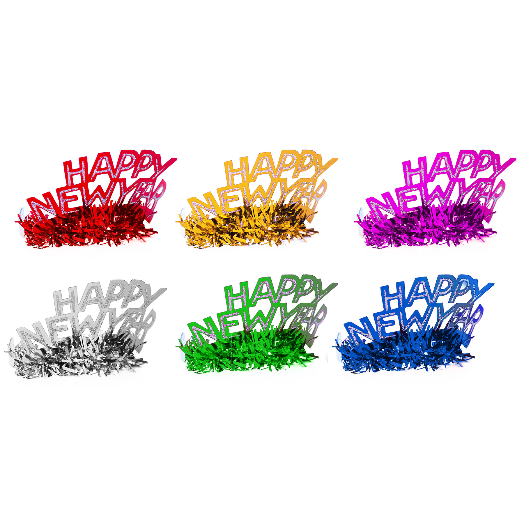 Barevné metalické čelenky s nápisem HAPPY NEW YEAR jsou senzačním doplňkem na oslavu nebo večírek při vítání Nového roku! Tyto čelenky nabízíme v různých barvách. Prodejné pouze v balení po 25 kusech.