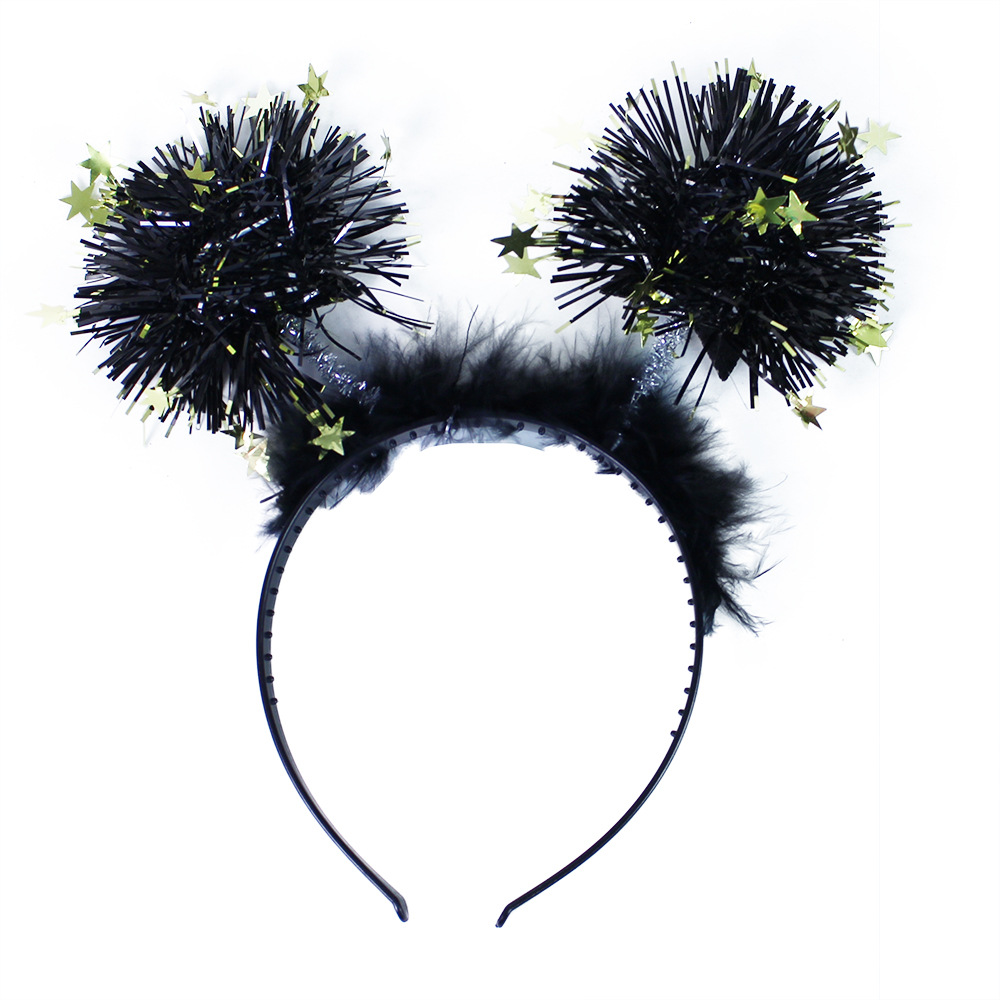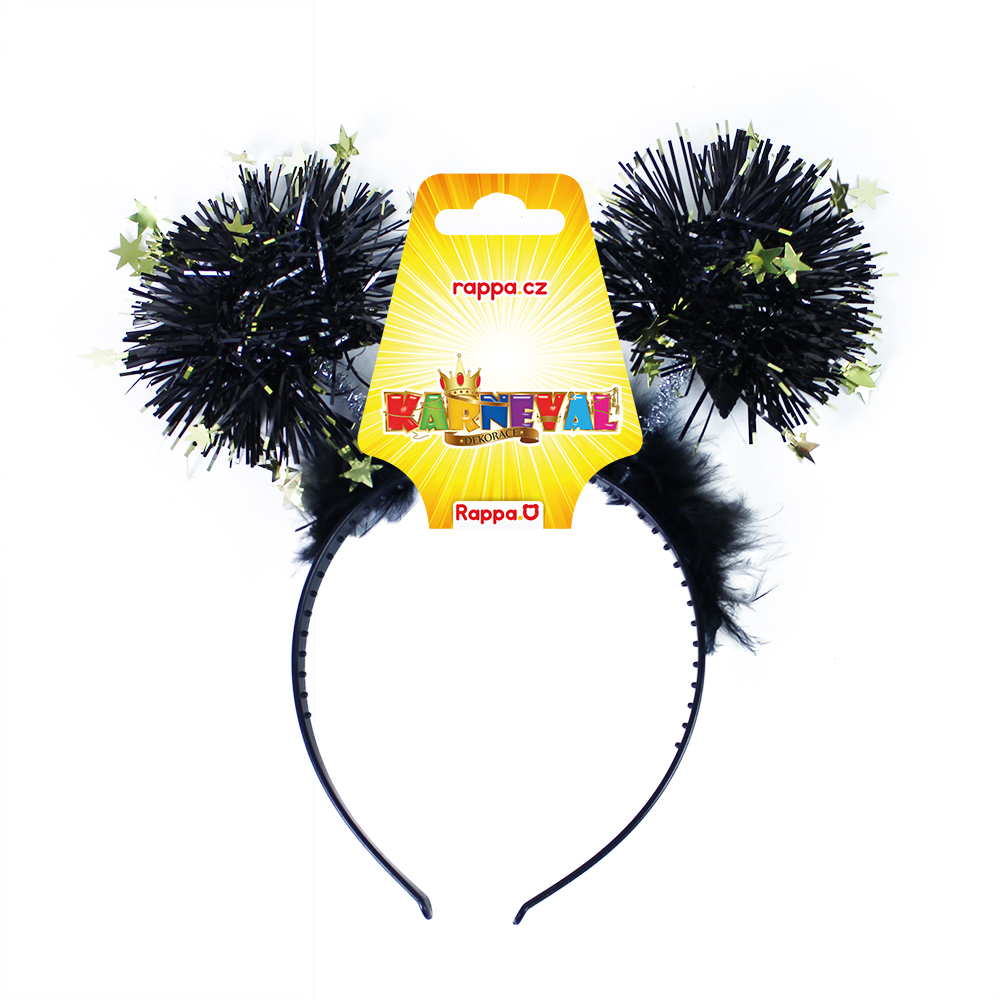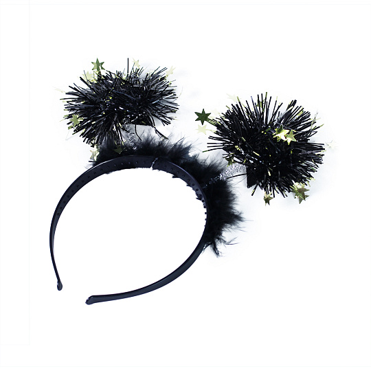 Černá čelenka s třásňovími koulemi, doplněná zlatými hvězdičkami je senzačním doplňkem na oslavu nebo večírek při vítání Nového roku!