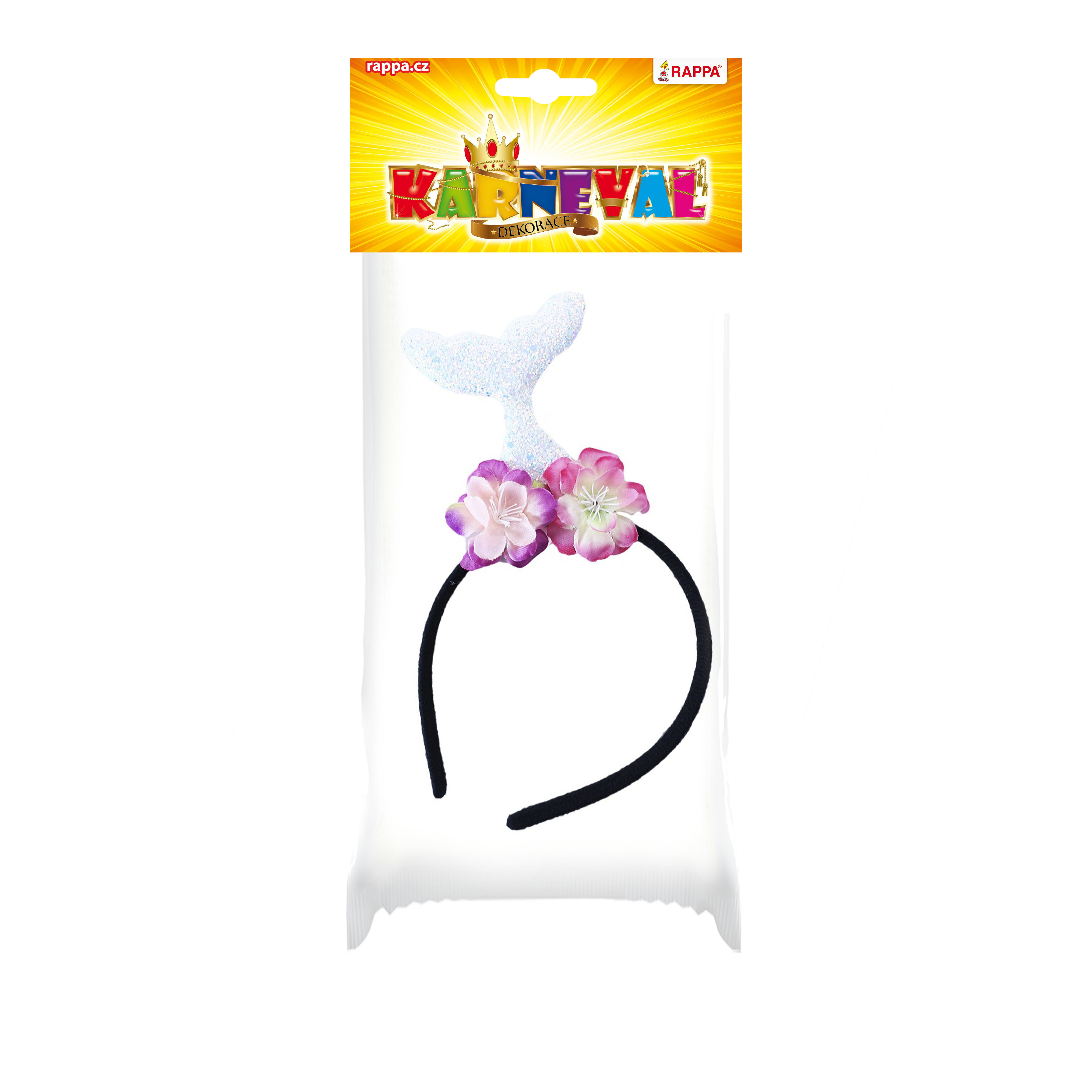 Veselá karnevalová čelenka ve stylu mořské víly je zdobena třpytivým rybím ocasem a květinami. Ideální doplněk ke kostýmu nebo jen tak na párty!