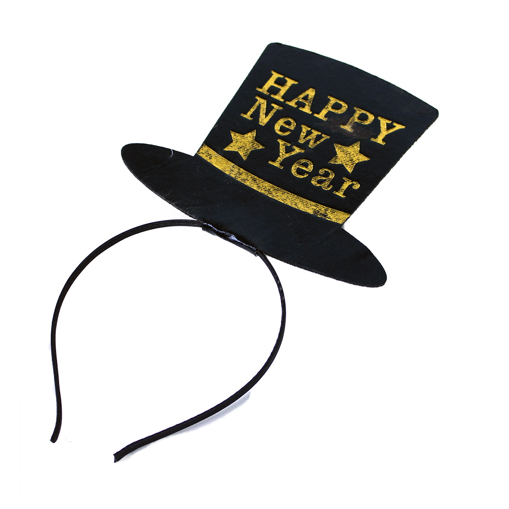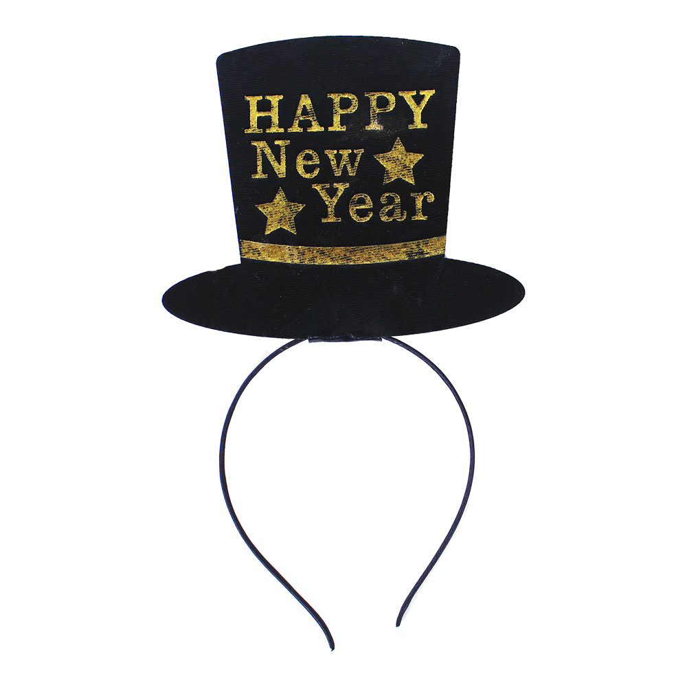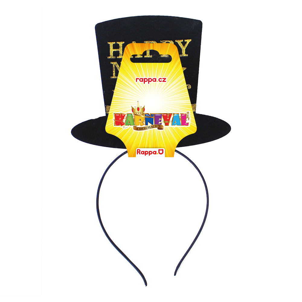 Černá čelenka s kloboučkem, doplněná zlatým nápisem HAPPY New Year je senzačním doplňkem na oslavu nebo večírek při vítání Nového roku!