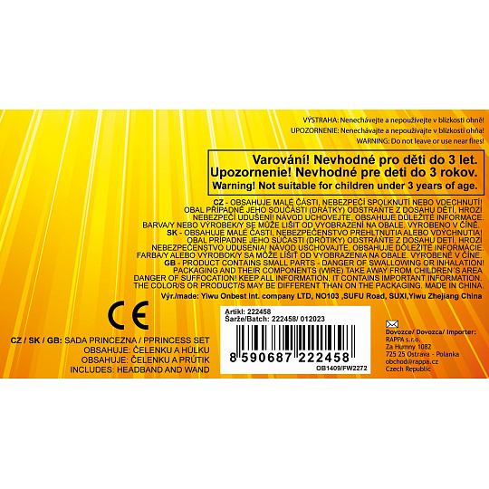 Která holčička by nechtěla být princeznou? S touto čelenkou a hůlkou se v ní proměníš hned a může zazářit na princeznovském nebo maškarním bále. Báječný doplněk ke každému kostýmu princezny!