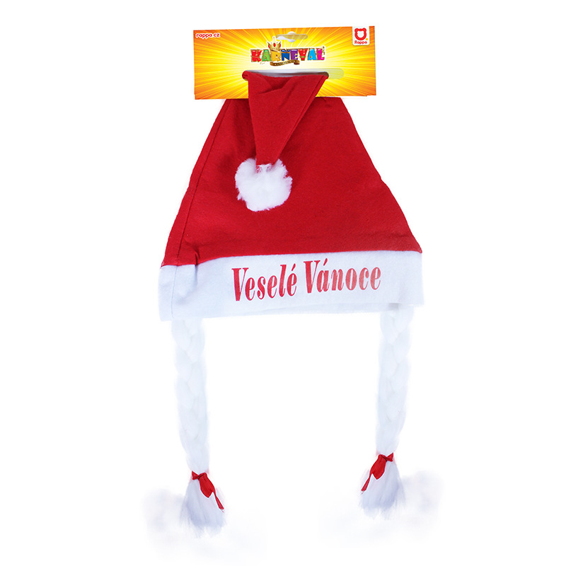 Vánoční atmosféra je ve vzduchu a vy vyrážíte za zábavou? V tomto případě nesmíte zapomenout na typickou pokrývku hlavy! Červená vánoční čepice s bílým lemem a bambulkou je zdobena sněhově bílými copánky s mašličkami. Vyrobena je z materiálu filc a bílý lem je doplněn o nápis Veselé Vánoce.