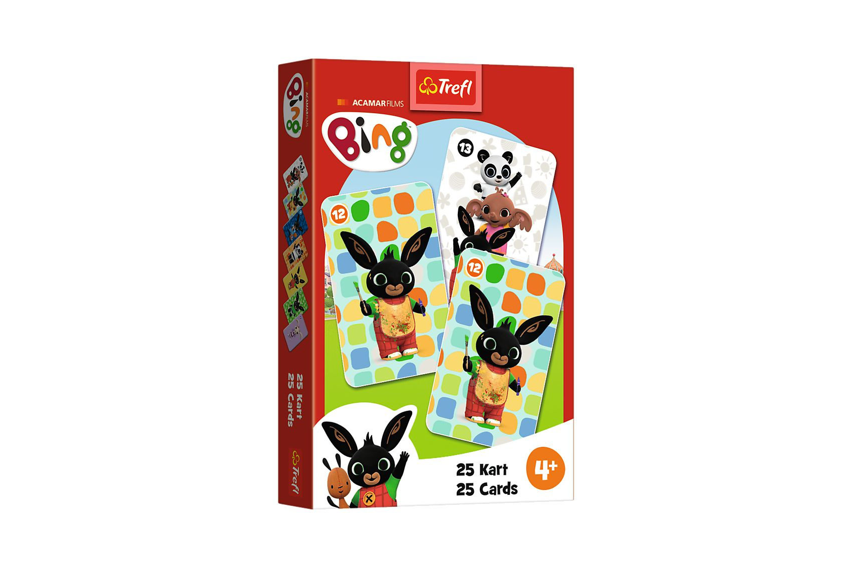 Kdo se zbaví všech svých karet se stejným označením a komu na konci hry zůstane v ruce Černý Petr? Hrou Vás bude doprovázet Králíček Bing. Karty: 25 karet - 12 dvojic označených stejnou číslovkou + 1 Černý Petr Rozměr krabičky: 6 x 9 cm Vhodné od 4 let