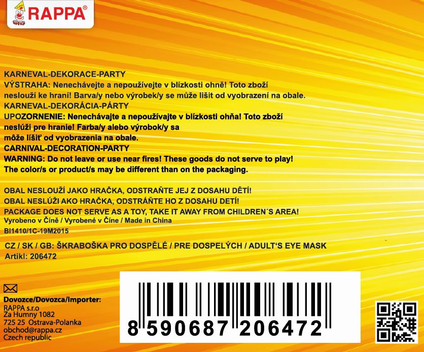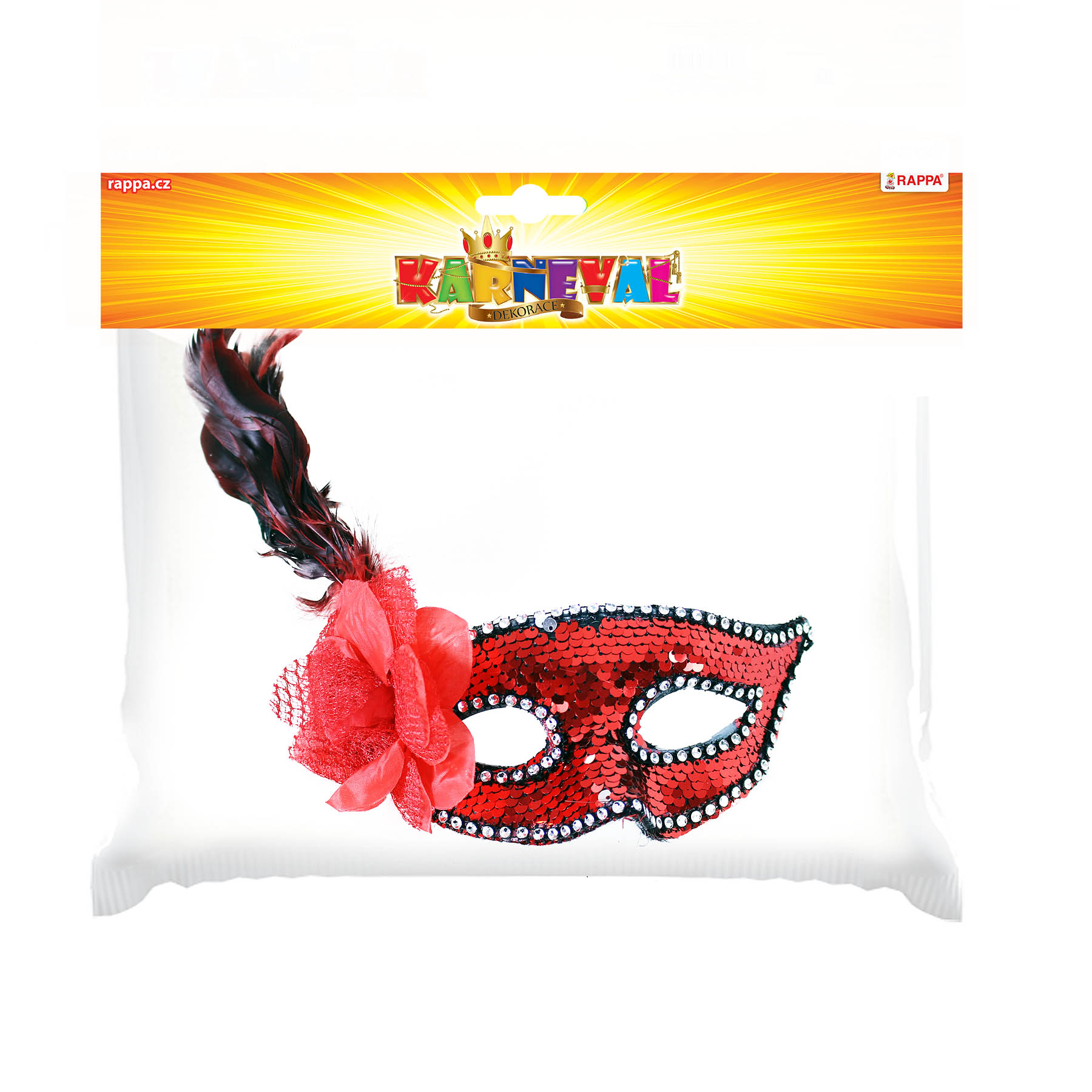 Rappa Červená škraboška s květem a peřím