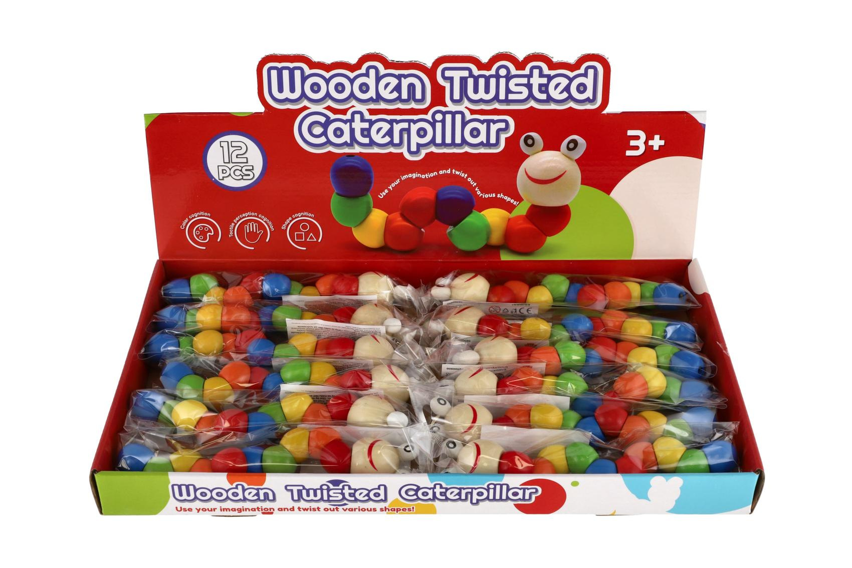 Teddies Červík/housenka kloubový dřevo 18cm barevný v sáčku
