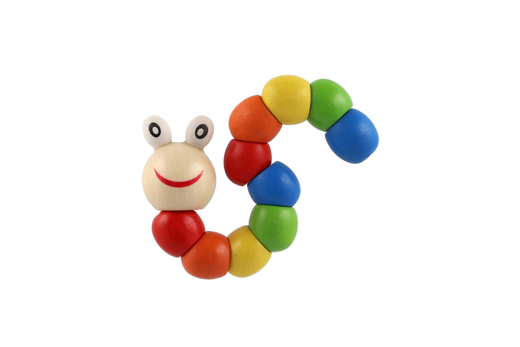 Tento veselý dřevěný červík potěší každé dítě. Je vyrobený z kvalitního dřeva a jeho jednotlivé barevné dílky jsou propojené kloubem, díky kterému lze hračku libovolně ohýbat a natáčet. Děti si tak mohou červíka tvarovat podle vlastní fantazie – stočit ho do kroužku, natáhnout nebo vytvářet různé vlnky.