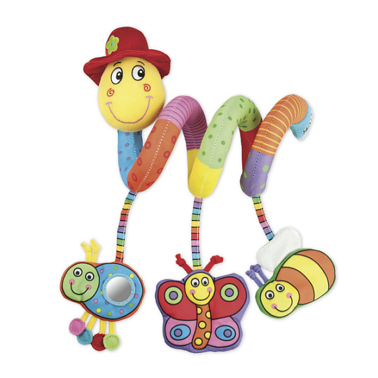 Červík Pepík se třemi visacími hračkami, kterého lze zavěsit na postýlku, kočárek nebo do autosedačky. Zabaví tak vaše dítě po dlouhou dobu a zároveň obsahuje prvky rozvíjející vjemové schopnosti vašeho dítěte - šustící klobouček, pískací hlava, beruška se zrcátkem, šustící motýlek a chrastící včelka. Vhodné pro děti již od 0 měsíců. Rozměry: 225 x 255 x 90 mm
