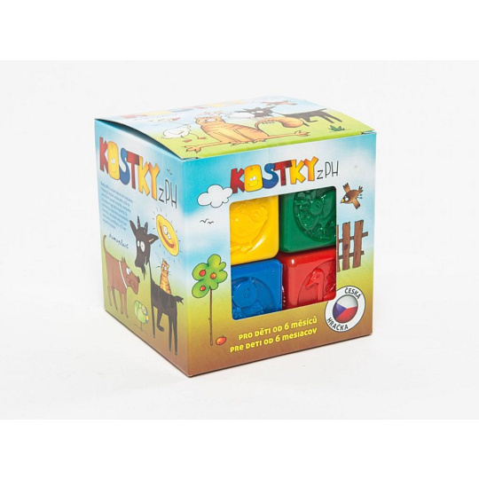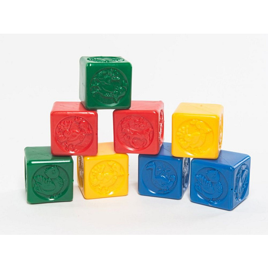 Sada osmi kusů barevných kostek pro nejmenší děti z plastu.\nČtyři různé druhy plastových kostek pro děti, které rozvijí motoriku dětí. Hrací plastové kostky \npotěší všechny malé kluky i holčičky. Čtyři barvy s motivy zvířátek a spousta zábavy pro každý den. \nTato didaktická hračka skvělým způsobem rozvine motoriku a fantazii vašich děti. Zábava pro každý den, to jsou plastové kostky pro děti.