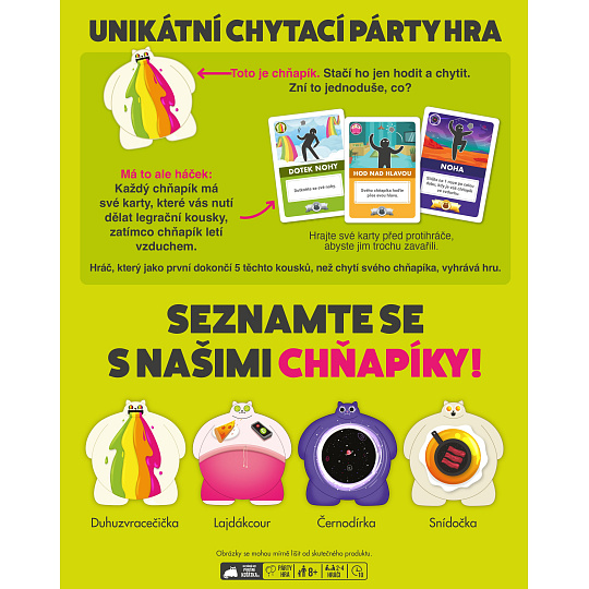 Až na vás přijde řada, vyhoďte svého chňapíka do vzduchu a chyťte ho, zároveň v tomto jednom hodu proveďte akce na VŠECH kartách akcí, co před vámi leží. Hru vyhrajete, pokud se vám podaří hodit a chytit chňapíka a splnit 5 karet akcí.
