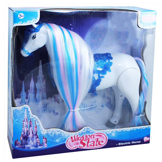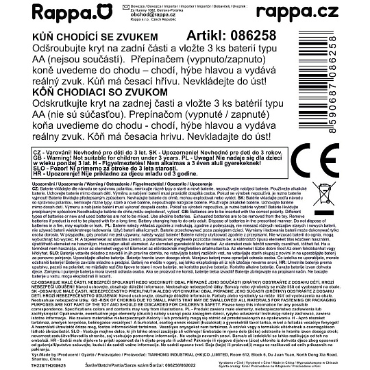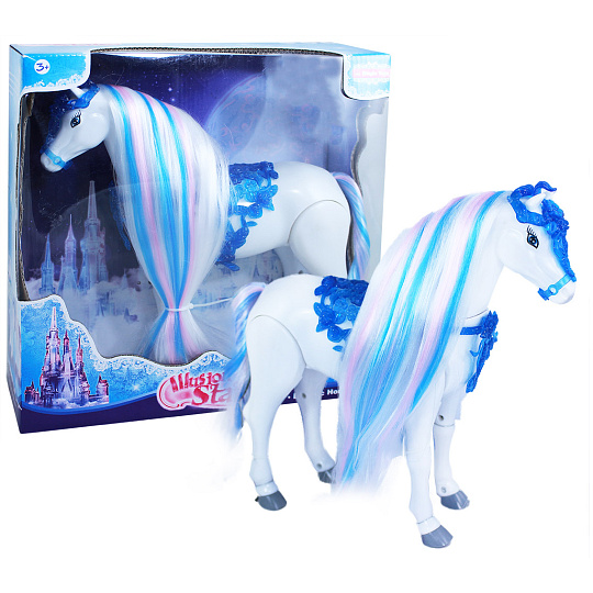 Krásný chodící kůň, který hýbe hlavou a vydává zvuk jako opravdový kůň. Kůň má také úžasnou česací hřívu. K aktivaci je potřeba vložit 3 ks baterií typu AA (není součástí).