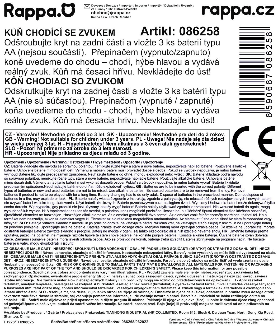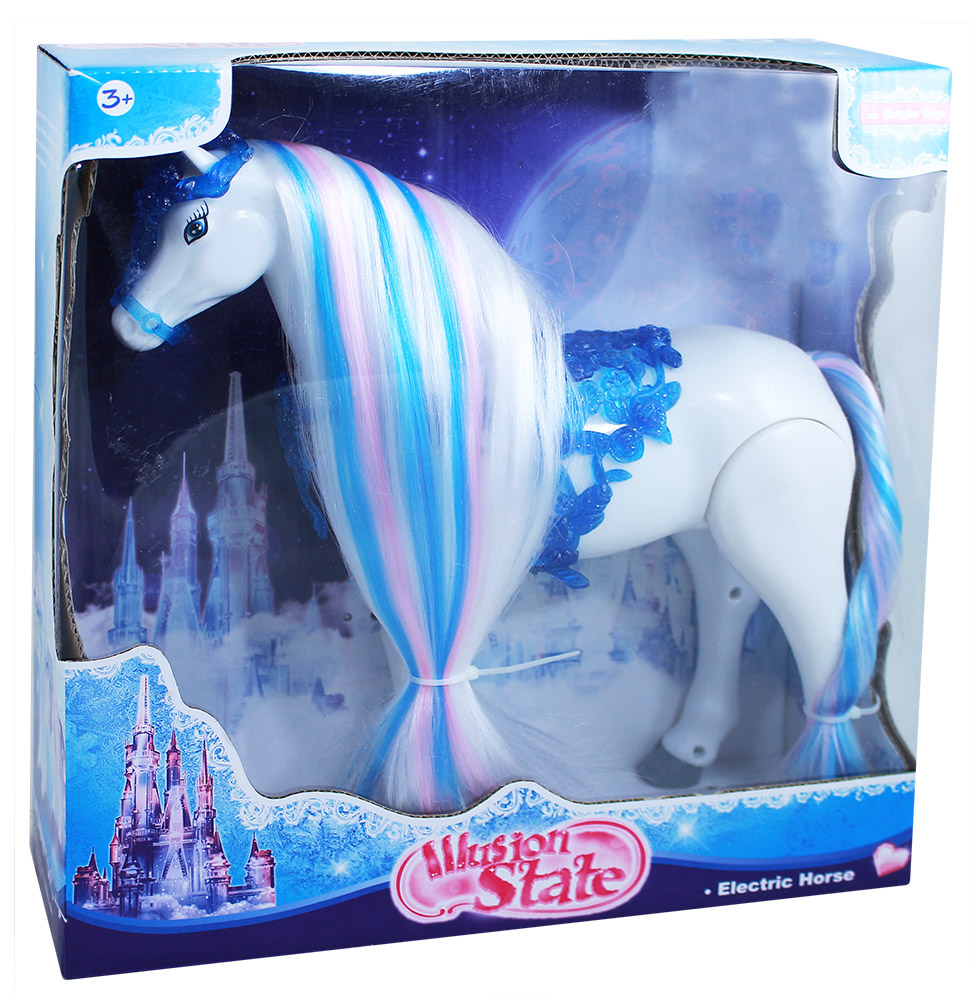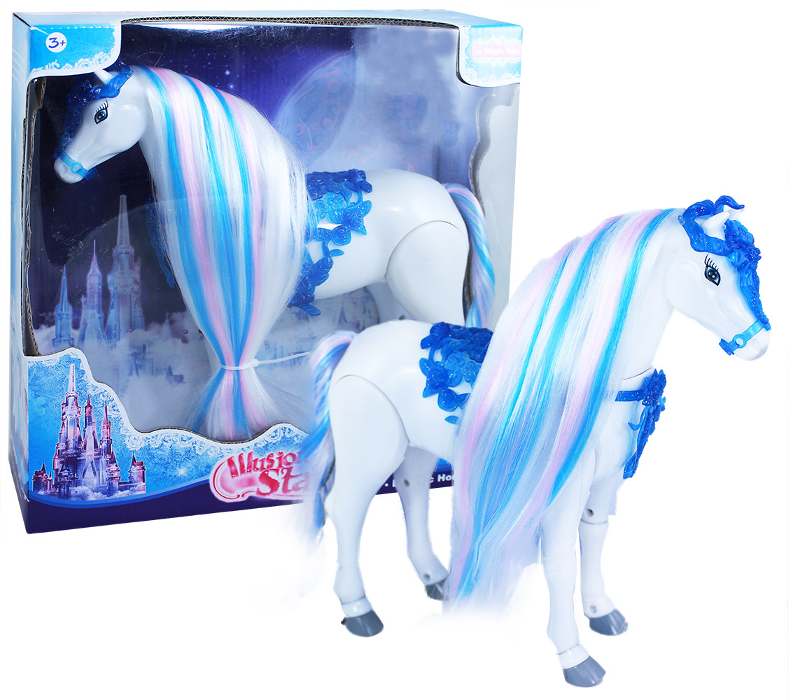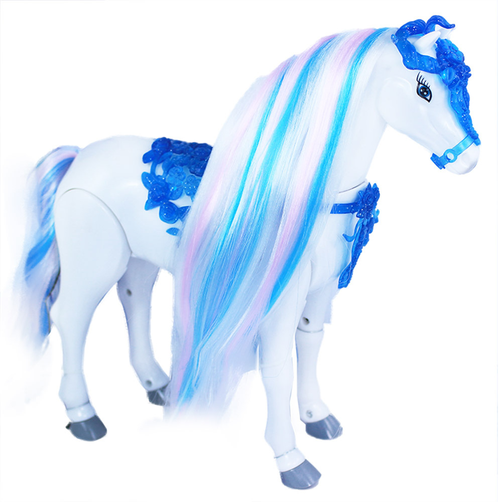 Krásný chodící kůň, který hýbe hlavou a vydává zvuk jako opravdový kůň. Kůň má také úžasnou česací hřívu. K aktivaci je potřeba vložit 3 ks baterií typu AA (není součástí).