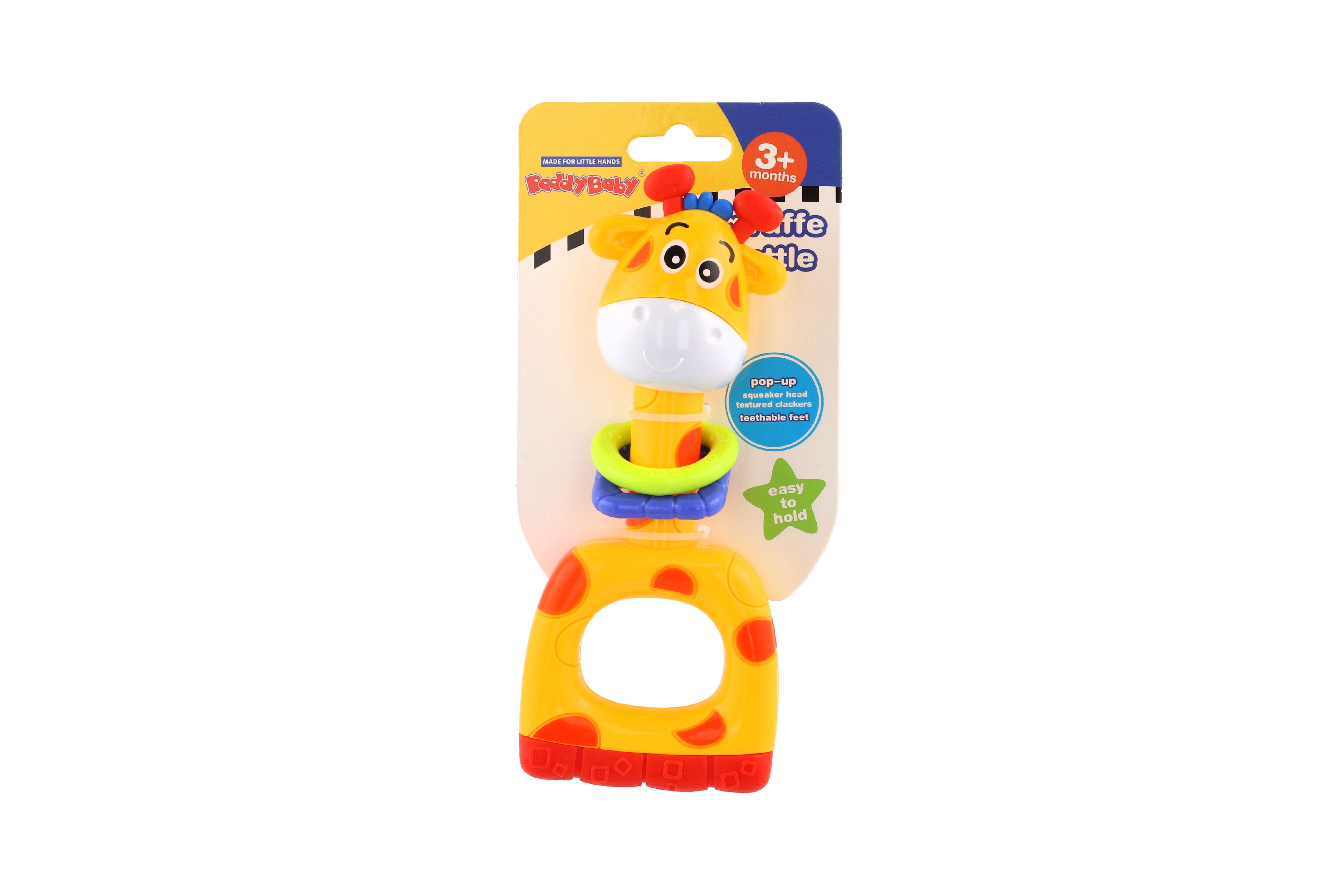 Teddies Chrastítko/kousátko/pískátko žirafa plast 7x16cm na kartě 3m+