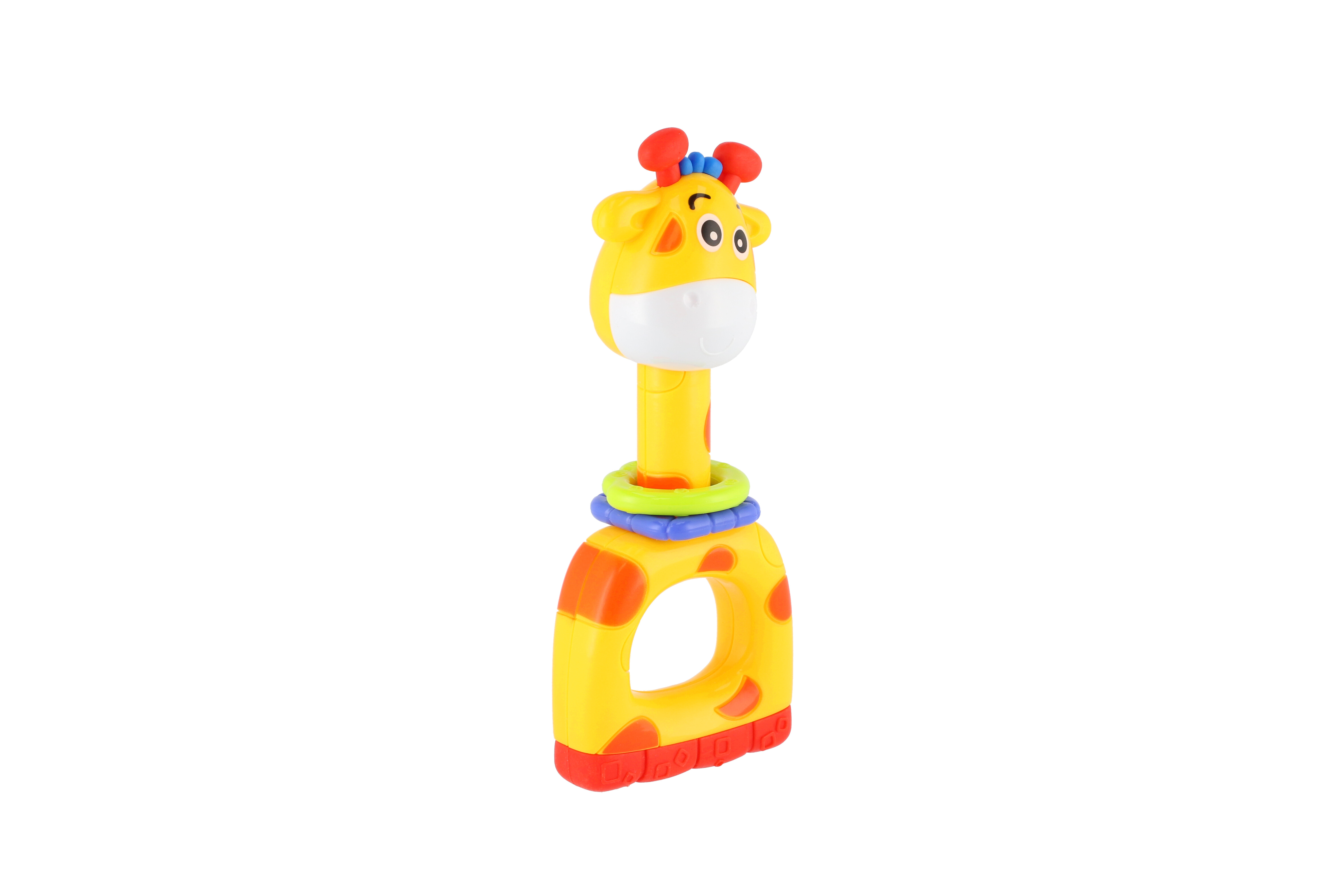 Krásné barevné dětské chrastítko ve tvaru žirafy. Chrastítko je určeno dětem od narození. Atraktivní tvary a intenzivní barvy zaujmou pozornost dítěte. Pohyblivé díly seznamují dítě se světem zvuků a barev. Chrastítko je vyrobeno z bezpečných materiálů. Rozměry hračky: 7 x 16 cm Vhodné pro děti od 3 měsíců