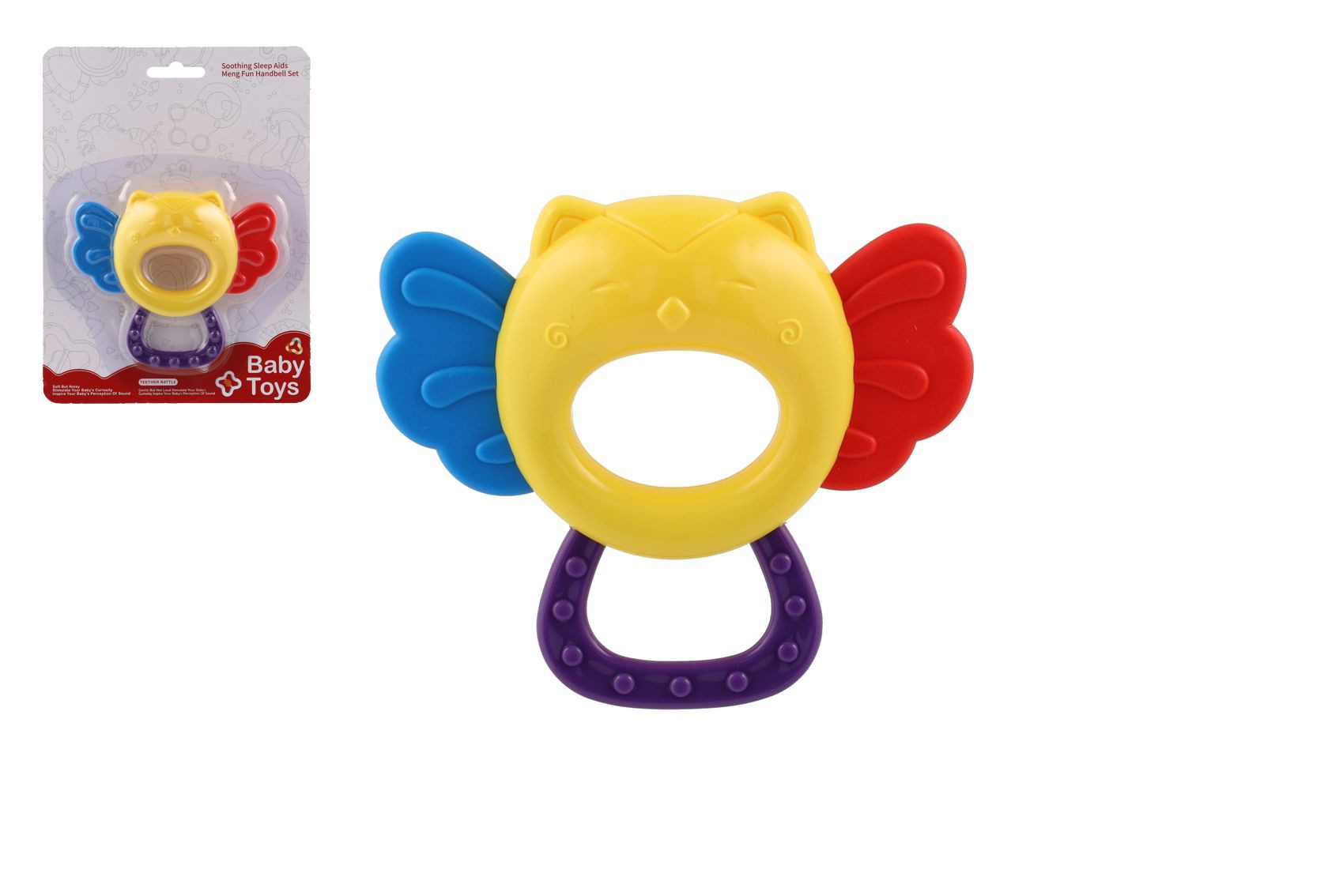 Chrastítko/kousátko sova plast 11x10cm na kartě 0m+