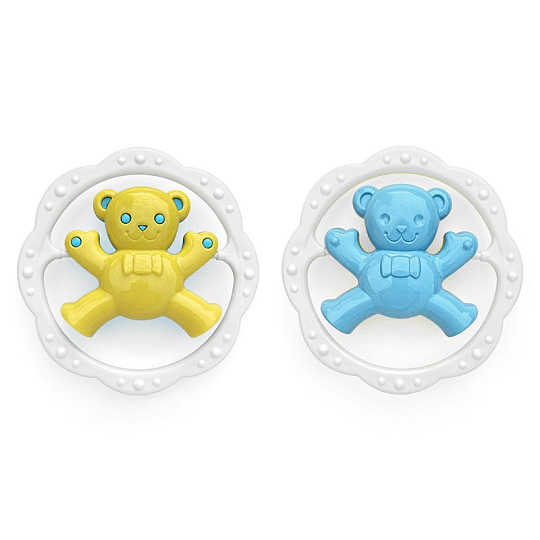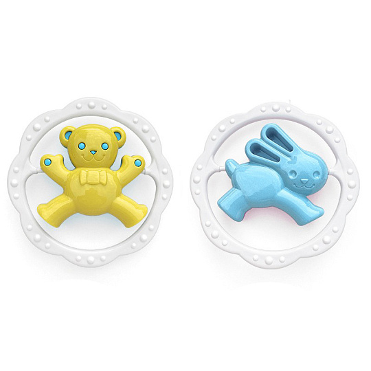 Pestrobarevné chrastítko kruh medvěd nebo zajíc. Rozvíjí motorické a zrakové dovednosti dítěte. Mix barev, vyberte si barevnou kombinaci pro holky a nebo pro kluky. Barvy se mohou lišit od vyobrazení, dodáváme dle skladové dostupnosti.