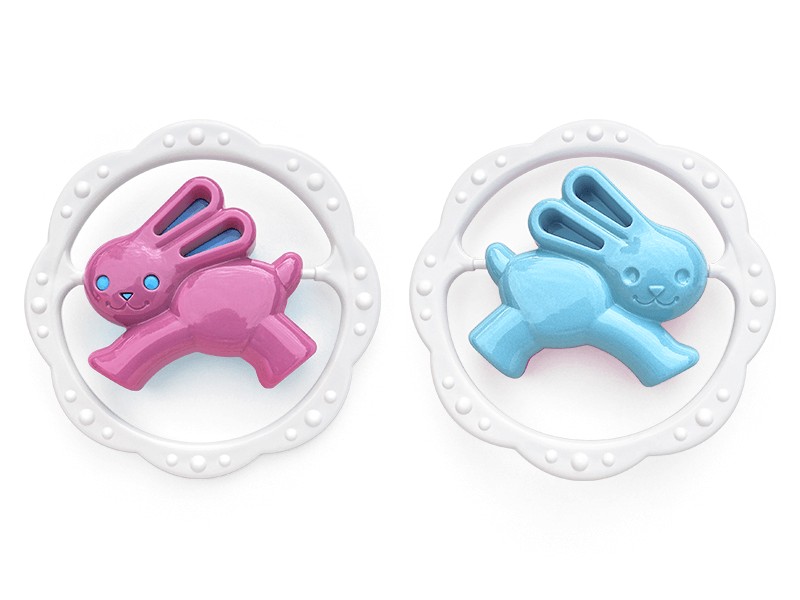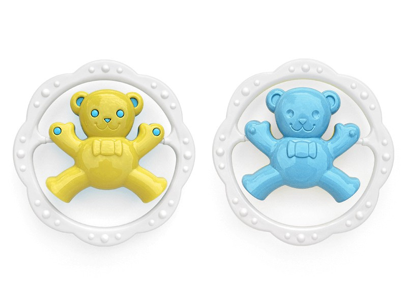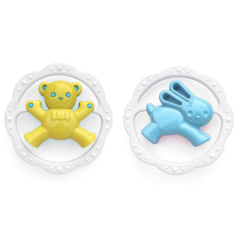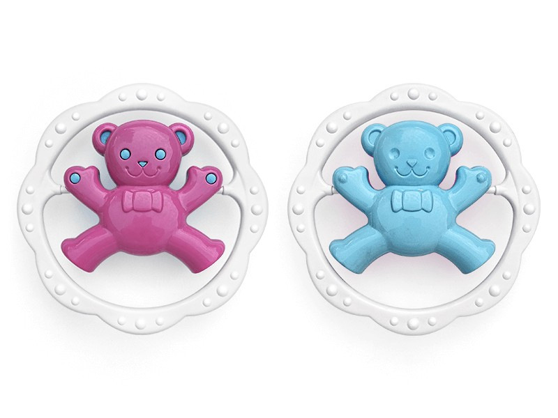 Pestrobarevné chrastítko kruh medvěd nebo zajíc. Rozvíjí motorické a zrakové dovednosti dítěte. Mix barev, vyberte si barevnou kombinaci pro holky a nebo pro kluky. Barvy se mohou lišit od vyobrazení, dodáváme dle skladové dostupnosti.
