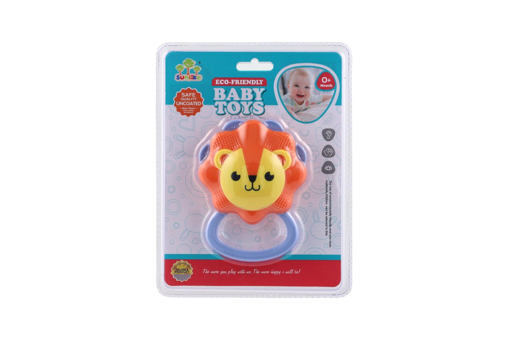 Chrastítko ve tvaru lva potěší každé miminko svým roztomilým vzhledem i jemným chrastivým zvukem. Lehký a dobře uchopitelný tvar padne do malých dětských ručiček a podporuje rozvoj jemné motoriky i sluchového vnímání. Vyrobeno z nezávadného plastu. Velikost hračky: 9 × 11 cm Vhodné pro děti od narození