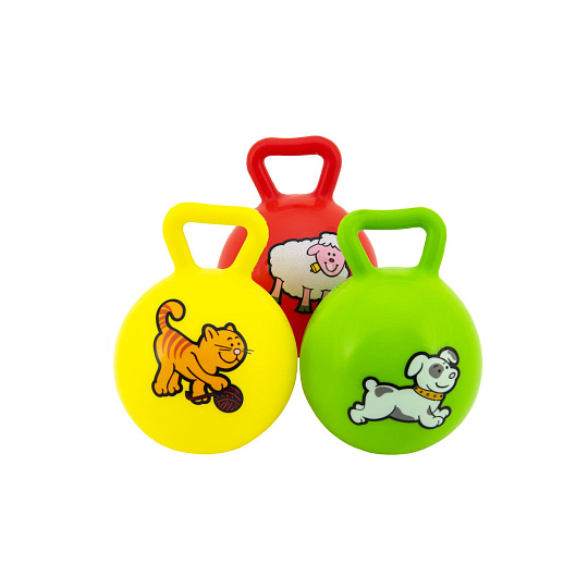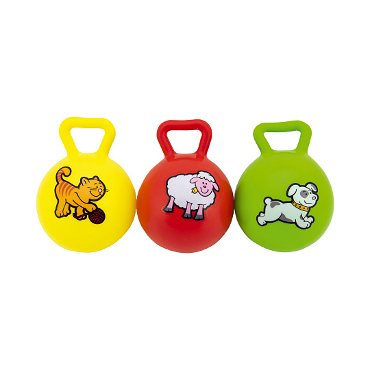 Teddies Míč s úchytem Moje první zvířátka chrastítko 10cm guma 3 barvy MPZ 12ks v boxu 0+
