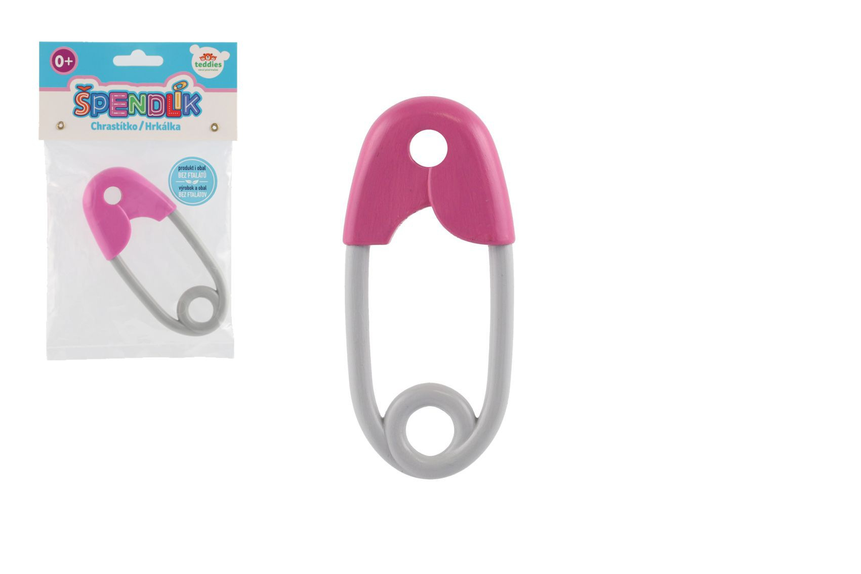 Chrastítko špendlík je klasická dětská hračka, která Vašemu dítěti nesmí chybět. Je ideální pro první pokusy miminka držet hračku. Snadno se uchopí, je velmi lehké a kontrastní provedení miminka jistě zaujme. Podporuje rozvoj jemné dětské motoriky a smyslového vnímání. Díky malým kuličkám uvnitř jemně chrastí. Velikost špendlíku: 12 cm Rozměr balení: 12 x 19 cm Vhodné pro děti od narození