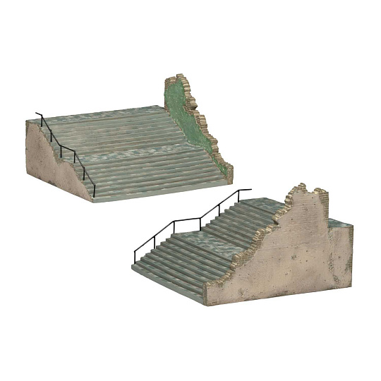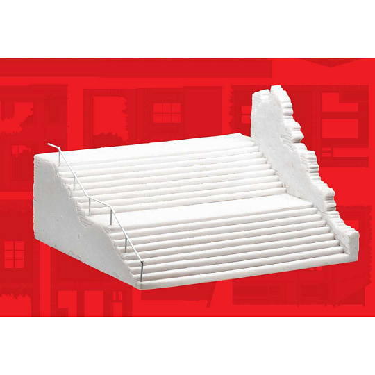 Tyto městské schody poskytují obrovský prostor pro zrealizování Vašich modelářských nápadů. Podobné exempláře můžete najít téměř kdekoliv v Evropě. Výborně se hodí i pro oživení Vašich herních scénářů. S tímto modelem lze použít figurky v měřítku 1:76, 1:72 a větší.