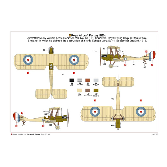 Vládou navržený Royal Aircraft Factory BE2c byl pro své stabilní letové vlastnosti ideální volbou pro použití jako noční stíhací letoun domácí obrany. Proslavil se zničením první německé vzducholodi nad Británií 3. září 1916 a jeho pilot poručík William Leefe Robinson si vysloužil Viktoriin kříž.