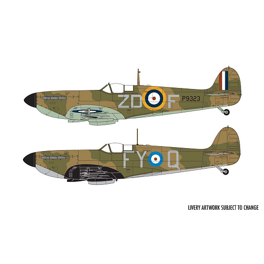 Model letadla ke slepení. Měřítko: 1:48; velikost: 192 mm; počet dílků: 149; obtížnost: 3. Informace o modelu: První sériový Spitfire Mk.I byl dopraven k eskadře RAF č. 19 se základnou v Duxfordu 4. srpna 1938 a zvěstoval tak příchod budoucí letecké ikony. V průběhu druhé světové války se objevilo ještě několik různých vylepšených var