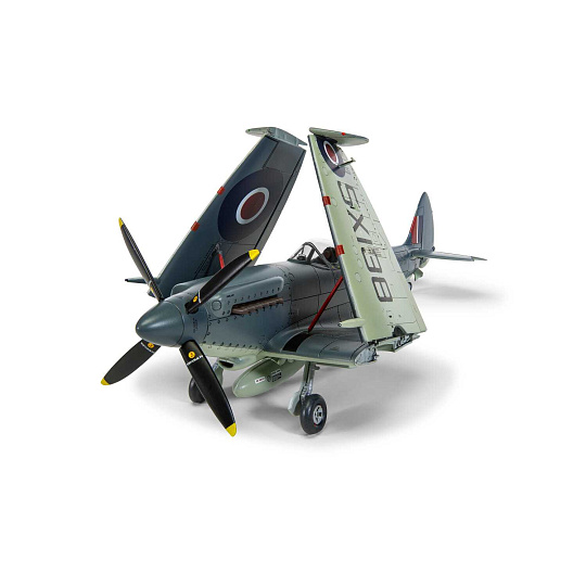 Model letadla ke slepení. Měřítko: 1:48; velikost: 21,3 cm; počet dílů: 157; obtížnost: 3. Informace o originálu a modelu: Supermarine Spitfire Mk.XVIII vychází z varianty Mk.XIV poháněné motorem Rolls Royce Griffon, oproti které však dostal celou řadu vylepšení. Ta zahrnovala modernizaci kokpitu a zvýšení kapacity paliva a dále zesíl